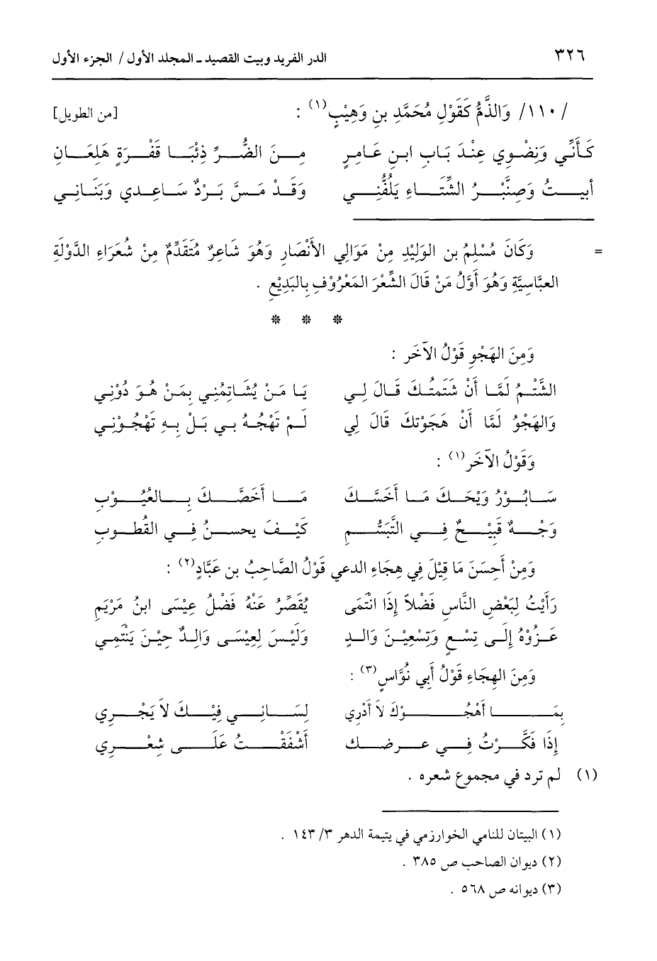 (1) البيتان للنامي الخوارزمي في يتيمة الدهر 3/ 143.