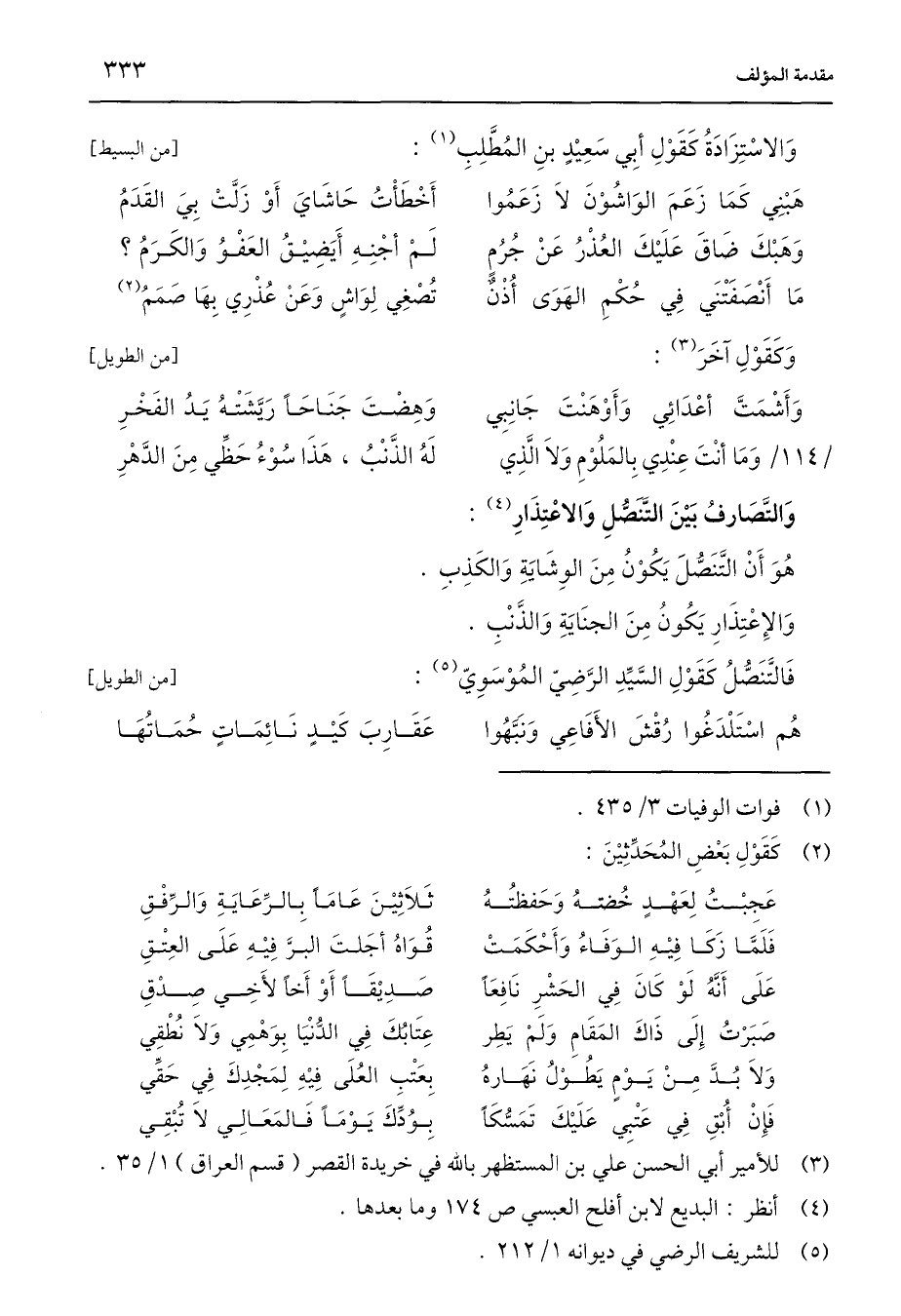 فَالتَّنَصُّلُ كَقَوْلِ السَّيِّدِ الرَّضِيّ المُوْسَوِيّ (¬5): [من الطويل]