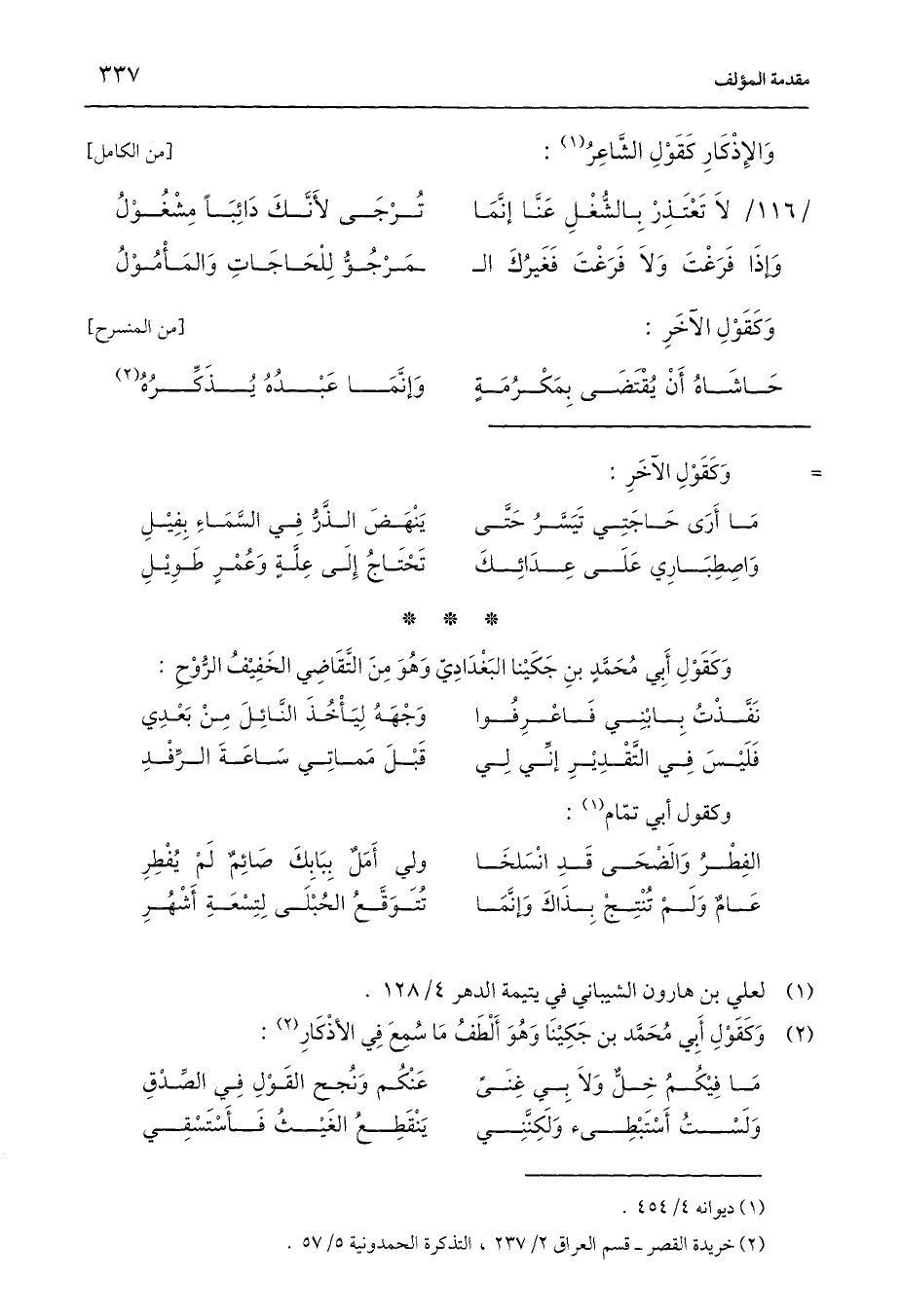 (2) خريدة القصر - قسم العراق 2/ 237، التذكرة الحمدونية 5/ 57.