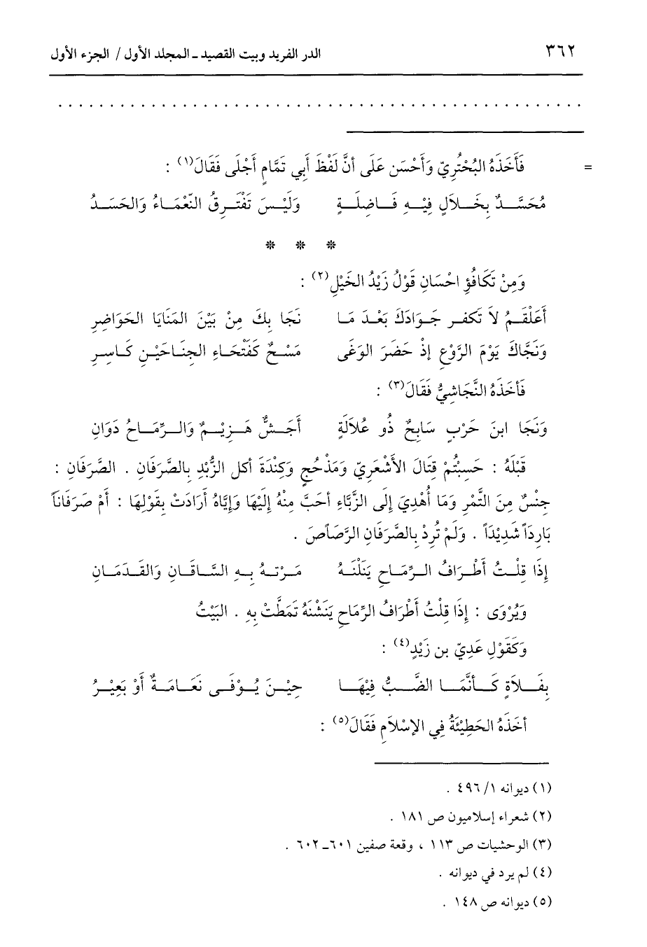 وَمِنْ تَكَافُؤِ احْسَانِ قَوْلُ زَيْدُ الخَيْلِ (2):