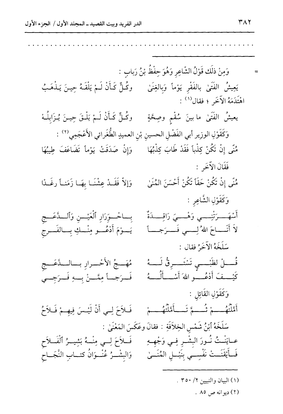 = وَمِنْ ذلَك قَوْلُ الشّاعِرِ وَهُوَ حِفْظُ بْنُ رَبابٍ:
