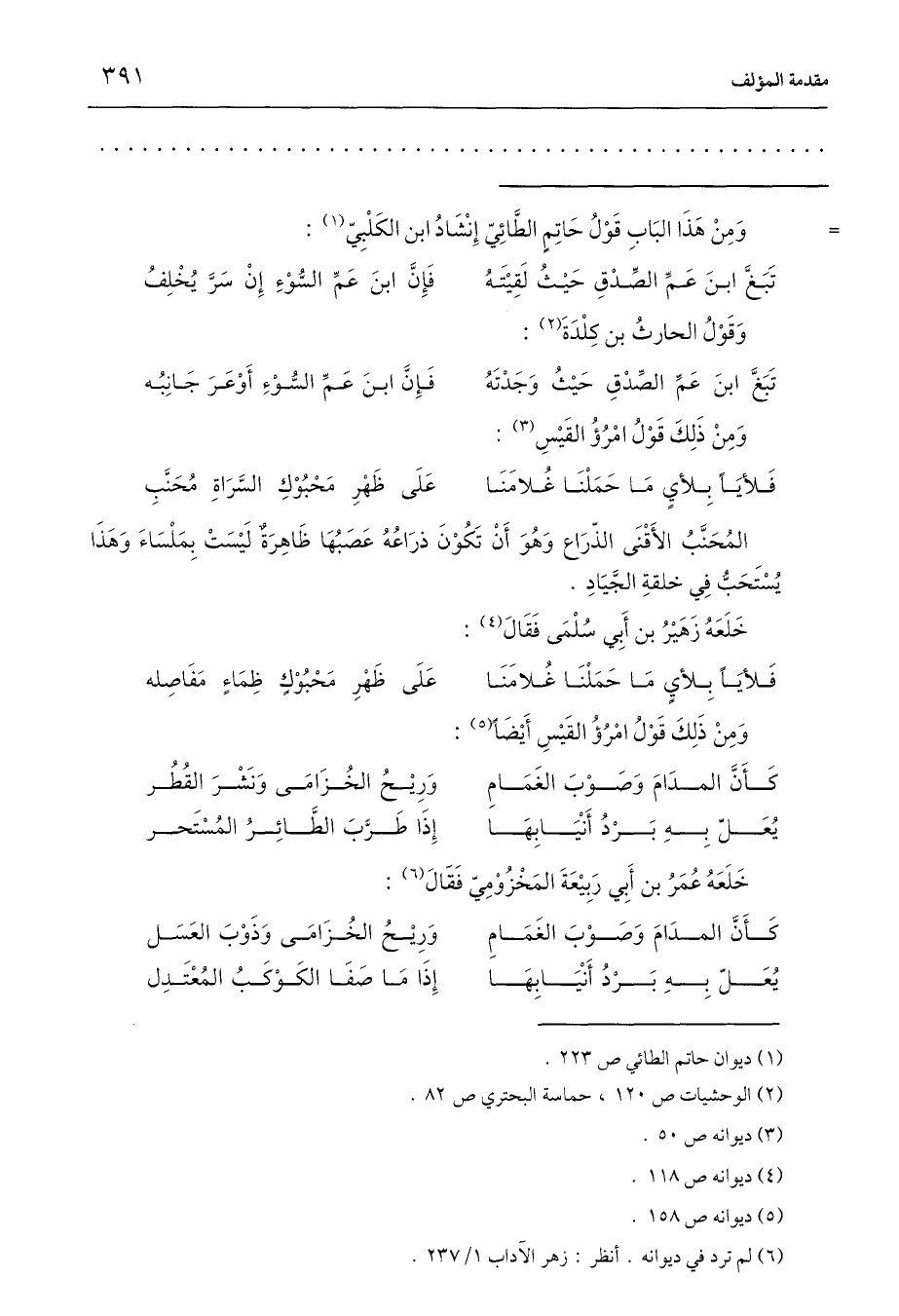 = وَمِنْ هَذَا البَابِ قَوْلُ حَاتِمٍ الطَّائِيّ إِنْشَادُ ابن الكَلْبِيّ (1):