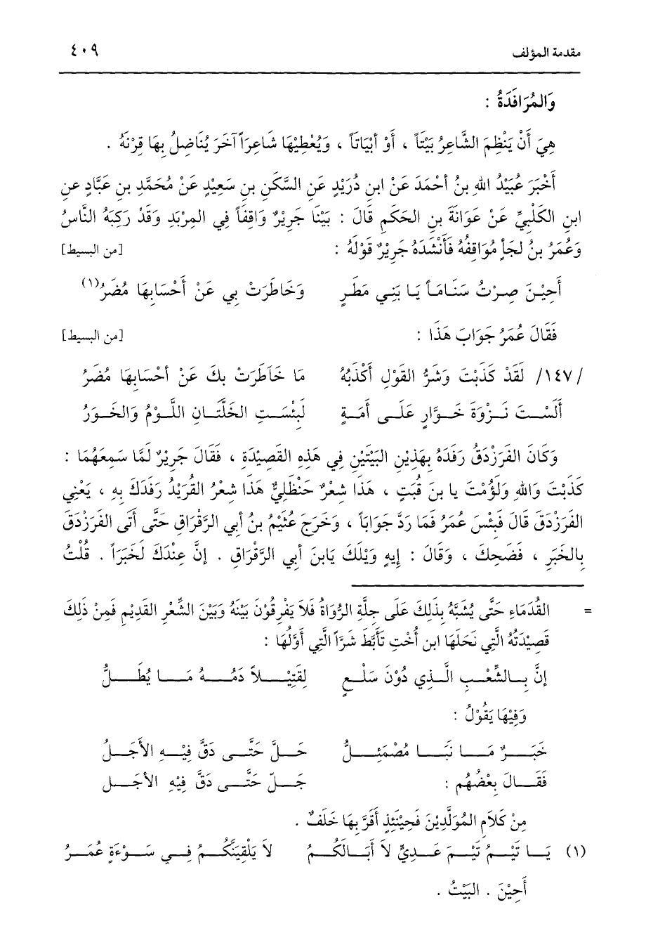 (¬1) يَا تَيْمُ تَيْمَ عَدِيٍّ لَا أَبَالَكُمُ ... لَا يَلْقِيَنَّكمُ فِي سَوْءَةٍ عُمَرُ