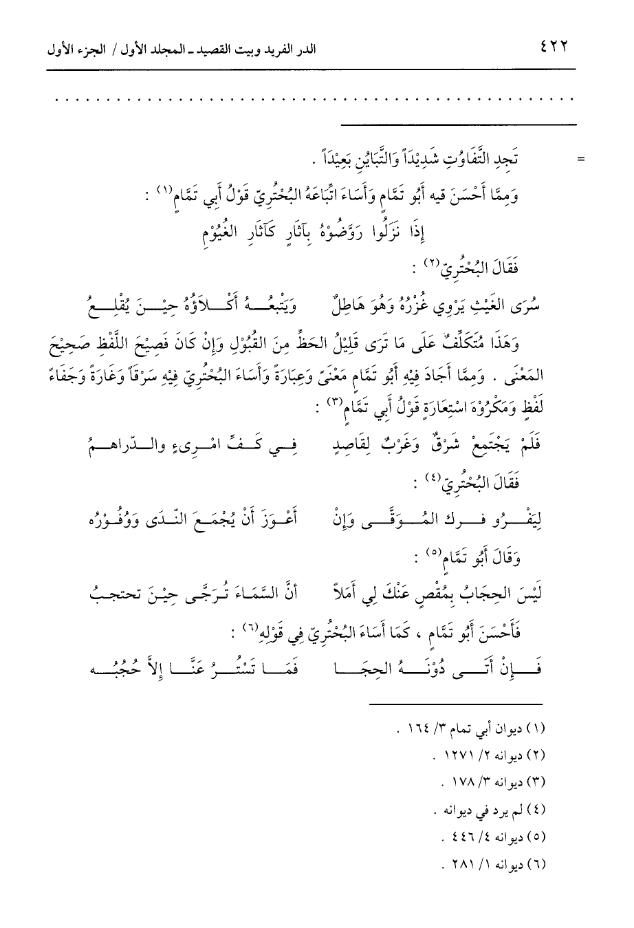 فَأَحْسَنَ أَبُو تَمَّامٍ، كَمَا أَسَاءَ البُحْتُرِيّ فِي قَوْلِهِ (6):