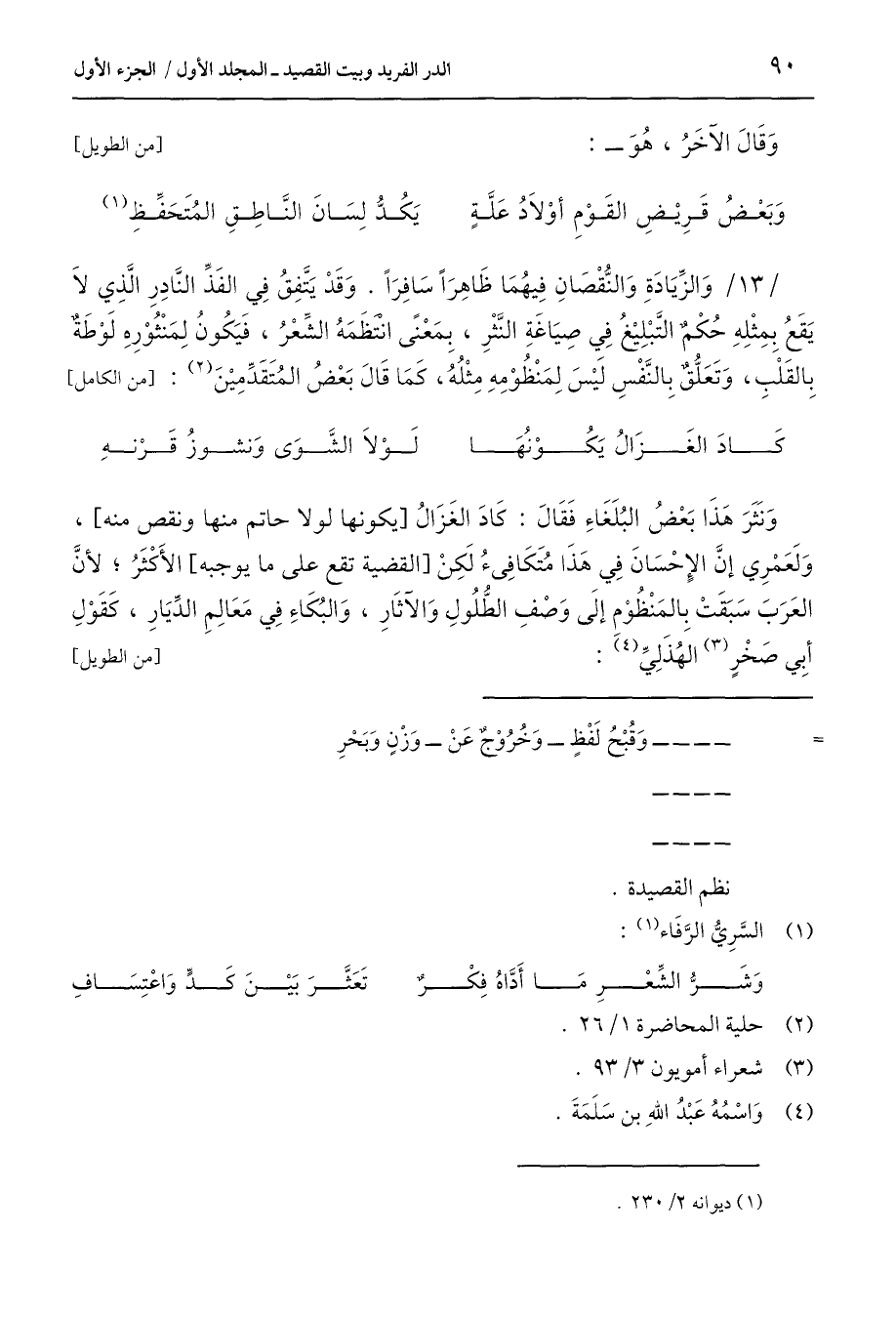 وَنَثَرَ هَذَا بَعْضُ البُلَغَاءِ فَقَالَ: كَادَ الغَزَالُ [يكونها لولا حاتم منها ونقص منه]، وَلَعَمْرِي إنَّ الإِحسَانَ فِي هَذَا مُتَكَافِئُ لَكِنْ [القضية تقع على ما يوجبه] الأَكْثَرُ؛ لأنَّ العَرَبَ سَبَقَتْ بِالمَنْظُوْم إلَى وَصفِ الطُّلُولِ وَالآثَارِ، وَالبُكَاءِ فِي مَعَالِمِ الدِّيَارِ، كَقَوْلِ أبِي صَخْرٍ (¬3) الهُذَلِيِّ (¬4): [من الطويل]