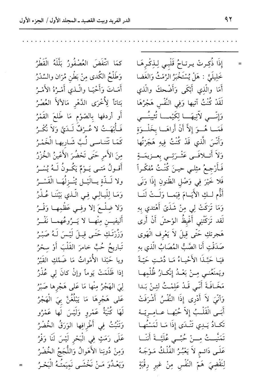 هَجرتكِ حَتّى قِيلَ لَا يَعْرِف الْهَوى ... وَزُرْتَكِ حَتَى قِيلَ لَيْسَ لَهُ صَبْرُ
