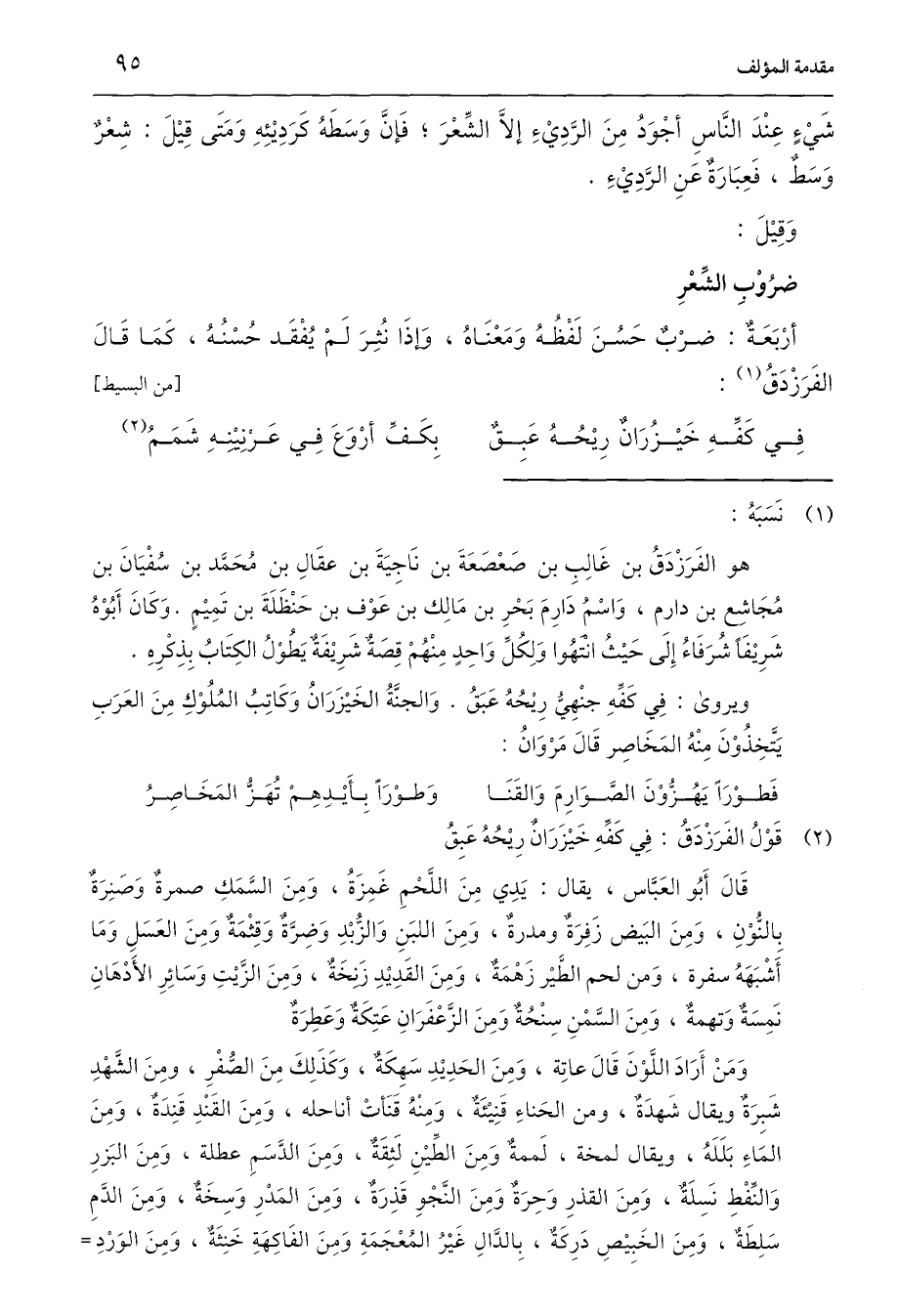 أرْبَعَةٌ: ضرْبٌ حَسُنَ لَفْظُهُ وَمَعْنَاهُ، وَإذَا نُثِرَ لَمْ يُفْقَد حُسْنُهُ، كَمَا قَالَ الفَرَزْدَقُ (¬1): [من البسيط]