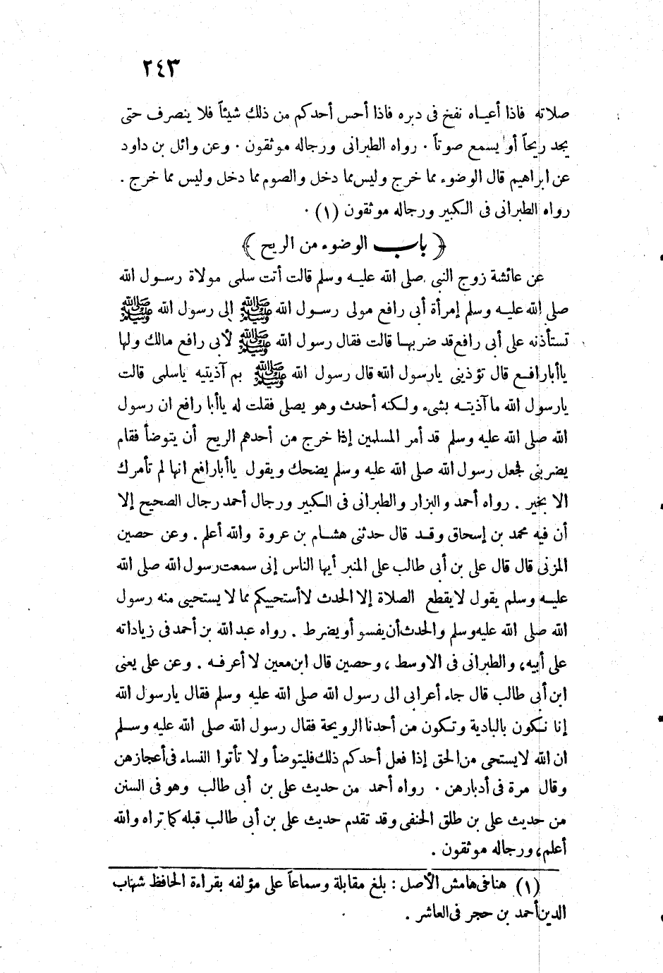 رَوَاهُ أَحْمَدُ مِنْ حَدِيثِ عَلِيِّ بْنِ أَبِي طَالِبٍ، وَهُوَ فِي السُّنَنِ مِنْ حَدِيثِ عَلِيِّ بْنِ طَلْقٍ الْحَنَفِيِّ، وَقَدْ تَقَدَّمَ حَدِيثُ عَلِيِّ بْنِ أَبِي طَالِبٍ قَبْلَهُ كَمَا تَرَاهُ. وَاللَّهُ أَعْلَمُ. وَرِجَالُهُ مُوَثَّقُونَ.