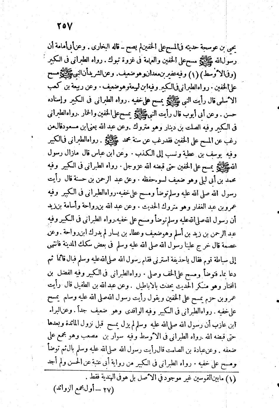1376 - وَعَنْ عَبْدِ اللَّهِ بْنِ الطُّفَيْلِ قَالَ: «رَأَيْتُ عَمْرَو بْنَ حَزْمٍ يَمْسَحُ عَلَى الْخُفَّيْنِ وَيَقُولُ: رَأَيْتُ رَسُولَ اللَّهِ - صَلَّى اللَّهُ عَلَيْهِ وَسَلَّمَ - يَمْسَحُ عَلَى خُفَّيْهِ».