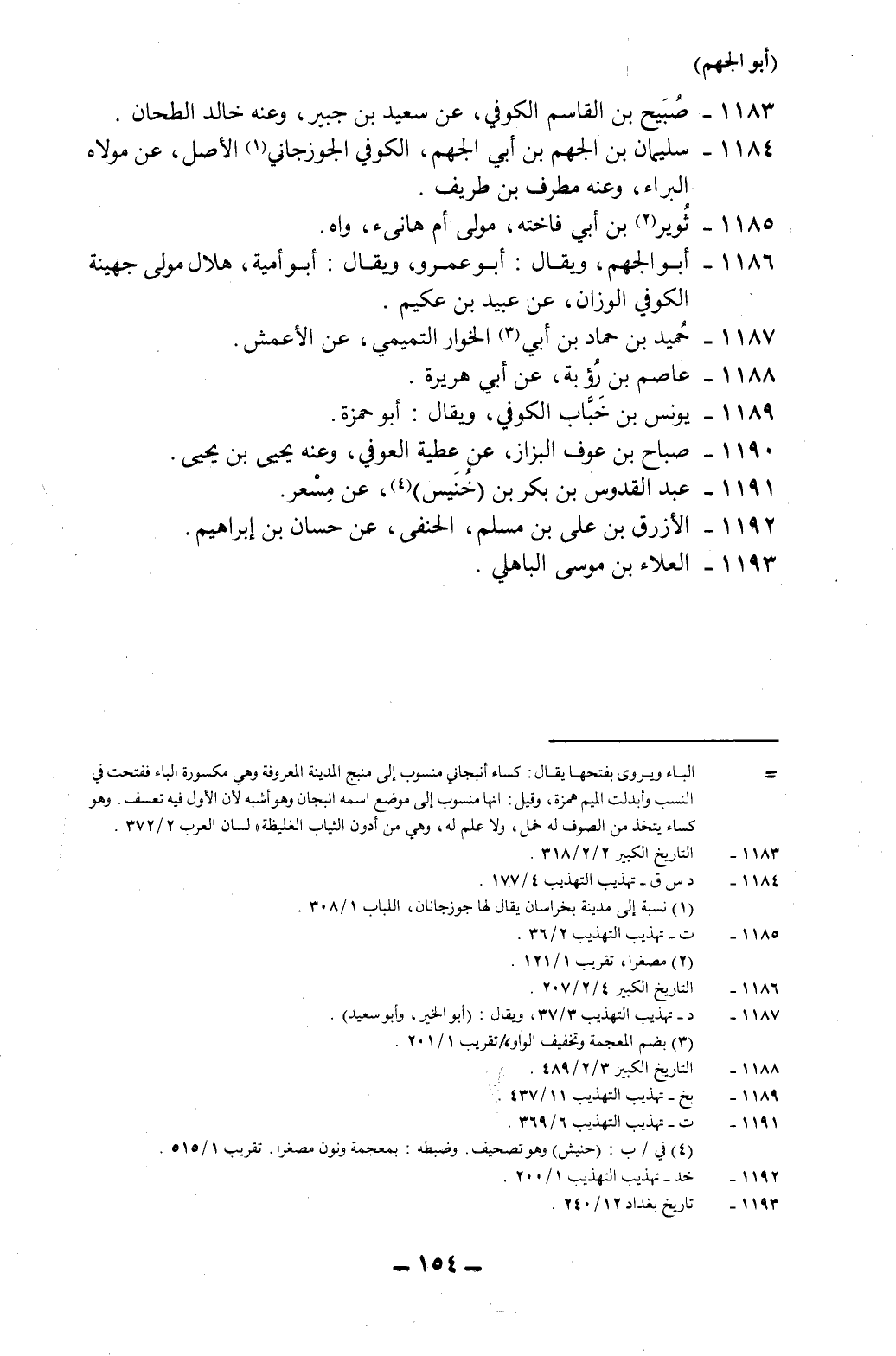 1184- سليمان بن الجهم بن أبي الجهم الكوفي، الجوزجاني1 الأصل، عن مولاه البراء، وعنه مطرف بن طريف.