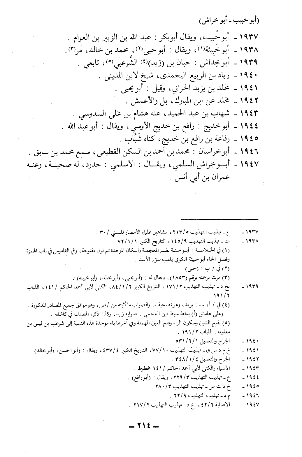 1940-*خ م د س ق- تهذيب التهذيب 10/77، التاريخ الكبير 4/437، ويقال: أبو الحسن، وأبو خالد.