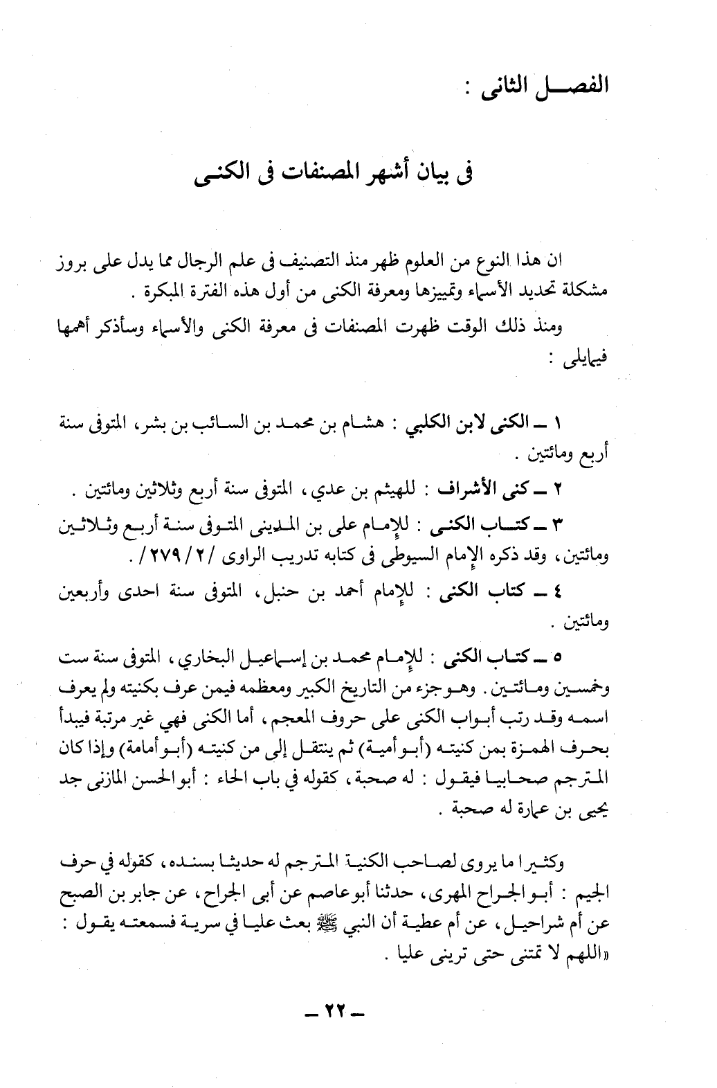 الفصل الثاني: في بيان أشهر المصنفات في الكنى
