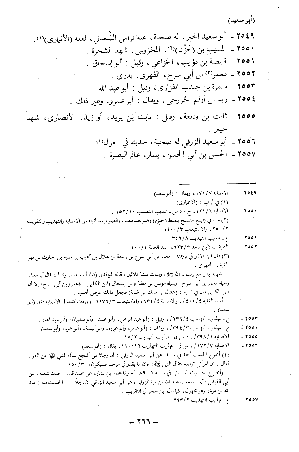 2554- ع- تهذيب التهذيب 3/394، ويقال: أبو عامر، وأبو عمارة، وأبو أنيسة، وأبو حمزة، وأبو سعد.