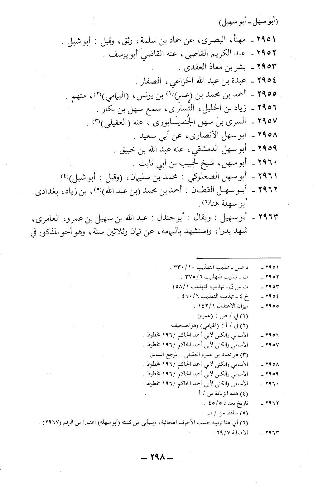 6 أي: هنا ترتيبه حسب الأحرف الهجائية، وسيأتي من كنيته "أبو سهلة" اعتباراً من الرقم (2967) .