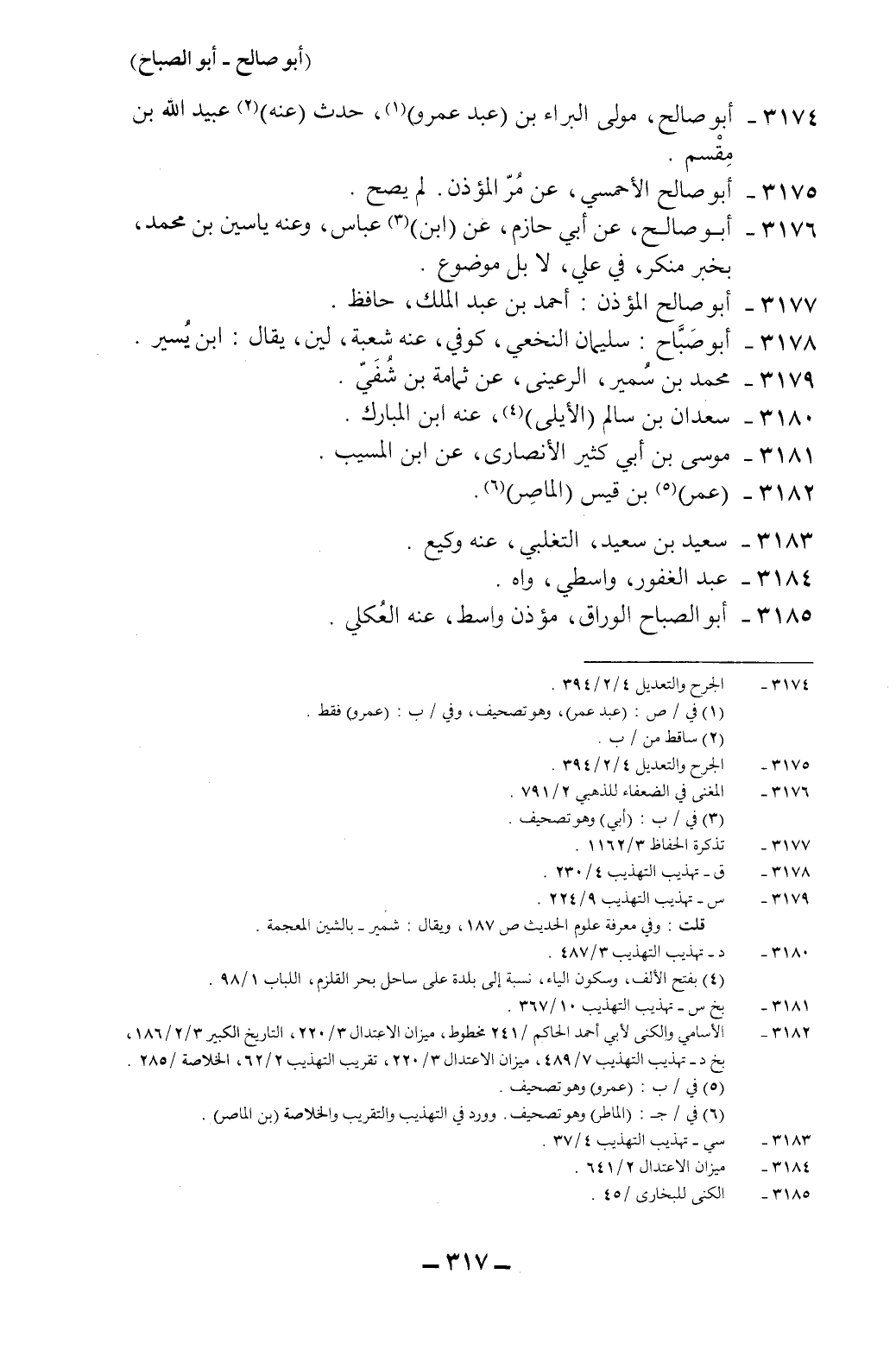 3182-*الأسامي والكنى لأبي أحمد الحاكم: 241 (مخطوط) ، ميزان الاعتدال 3/220، التاريخ الكبير 3/2/186، بخ د- تهذيب التهذيب 7/489، ميزان الاعتدال 3/220، تقريب التهذيب 2/62، الخلاصة: 285.