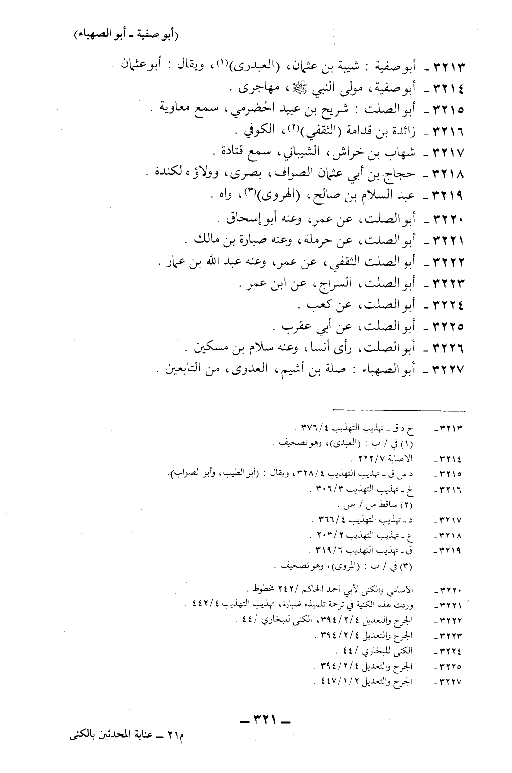 3221-*وردت هذه الكنية في ترجمة تلميذه ضبارة. تهذيب التهذيب 4/442.