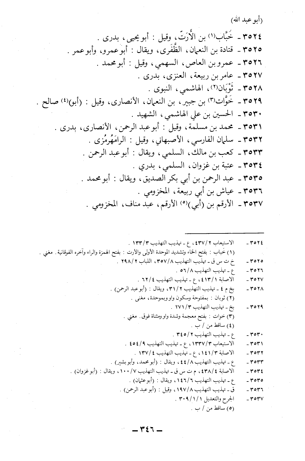 3525-*الاستيعاب 2/437، ع- تهذيب التهذيب 3/133.