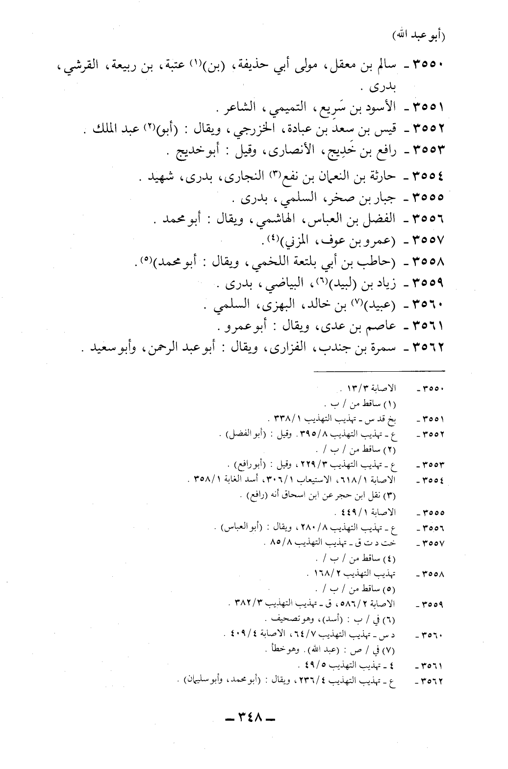 3555-*الإصابة 1/618، الاستيعاب 1/306، أسد الغابة 1/358.