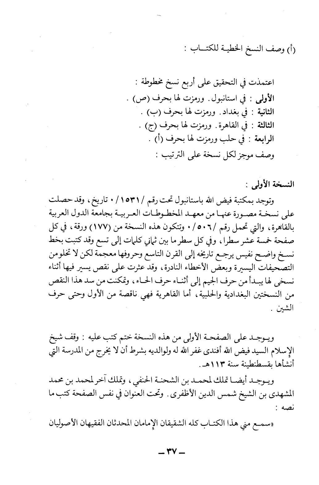 وصف النسخ المخطوطة