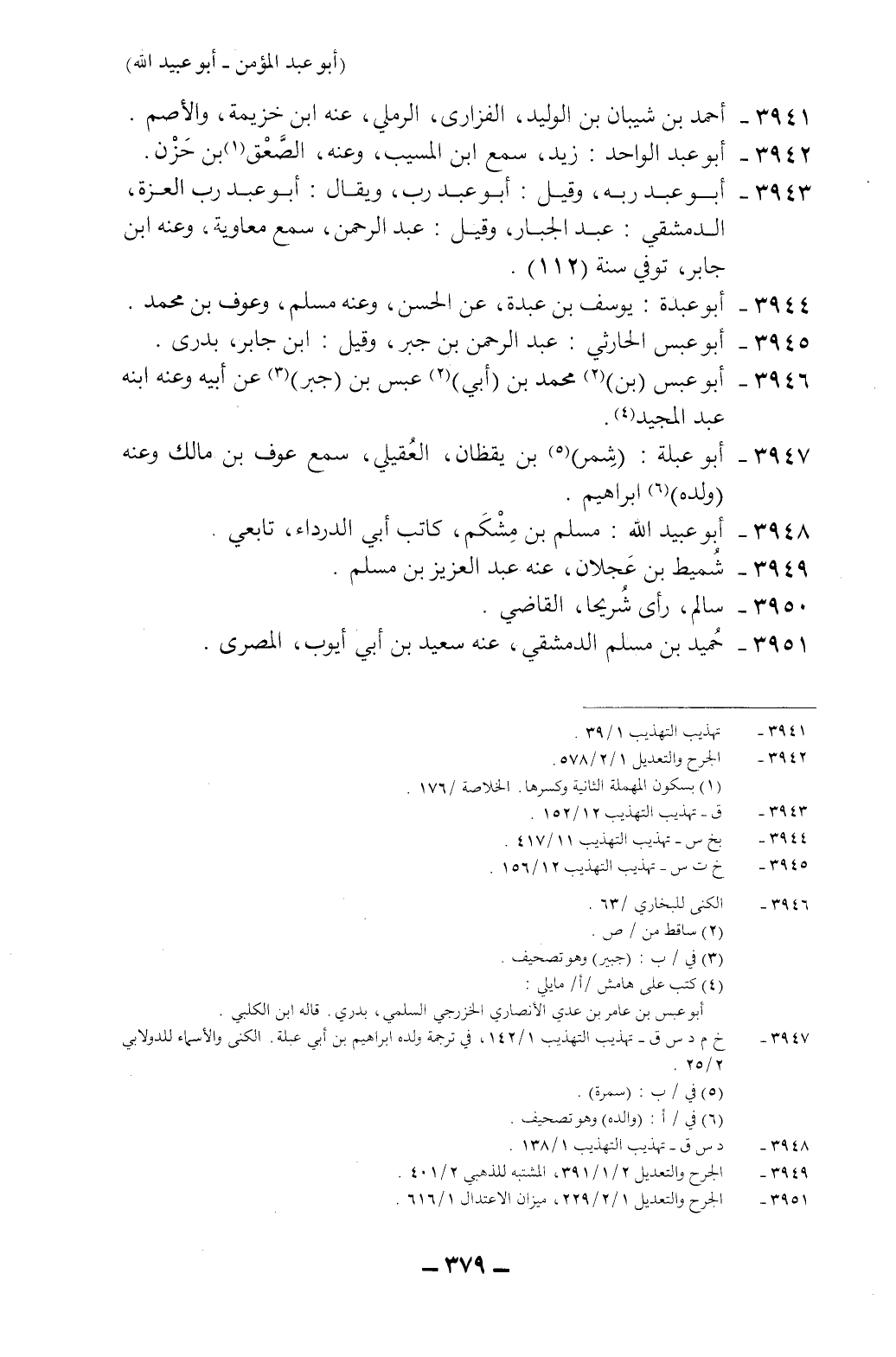 3948-*خ م د س ق- تهذيب التهذيب 1/142، في ترجمة ولده إبراهيم بن أبي عبلة، الكنى والأسماء للدولابي 2/25.