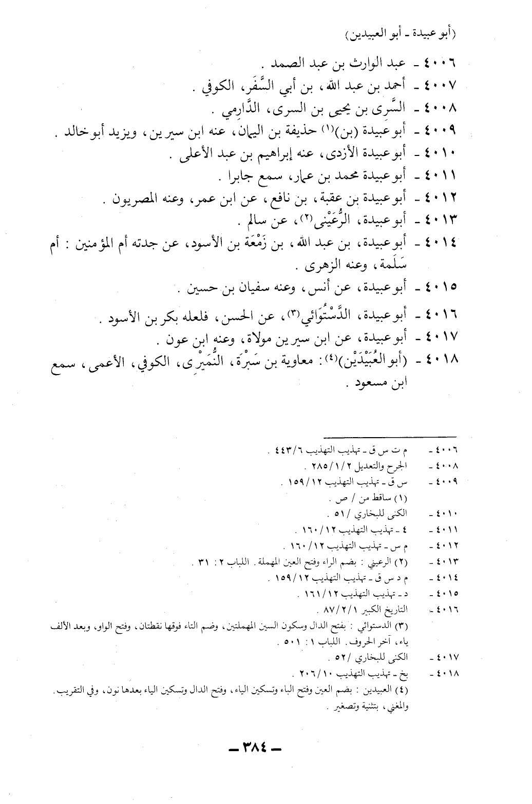 4018- *أبو العُبَيْدَيْن4: معاوية بن سَبْرَة النُّمَيْرِي، الكوفي، الأعمى، سمع ابن مسعود.