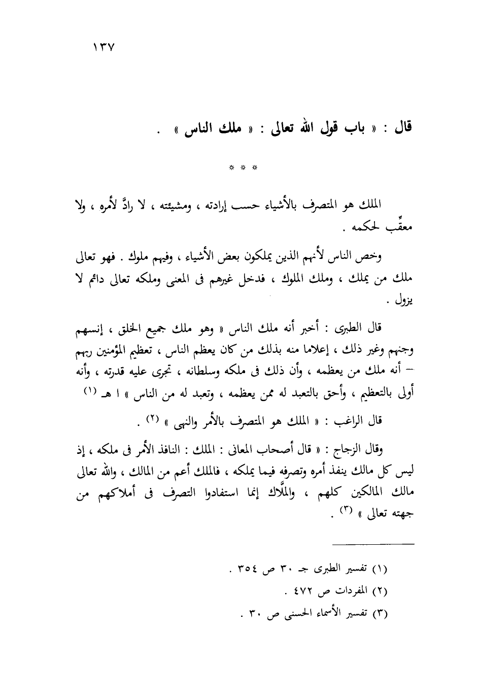 (¬3) "تفسير الأسماء الحسنى" (ص30) .