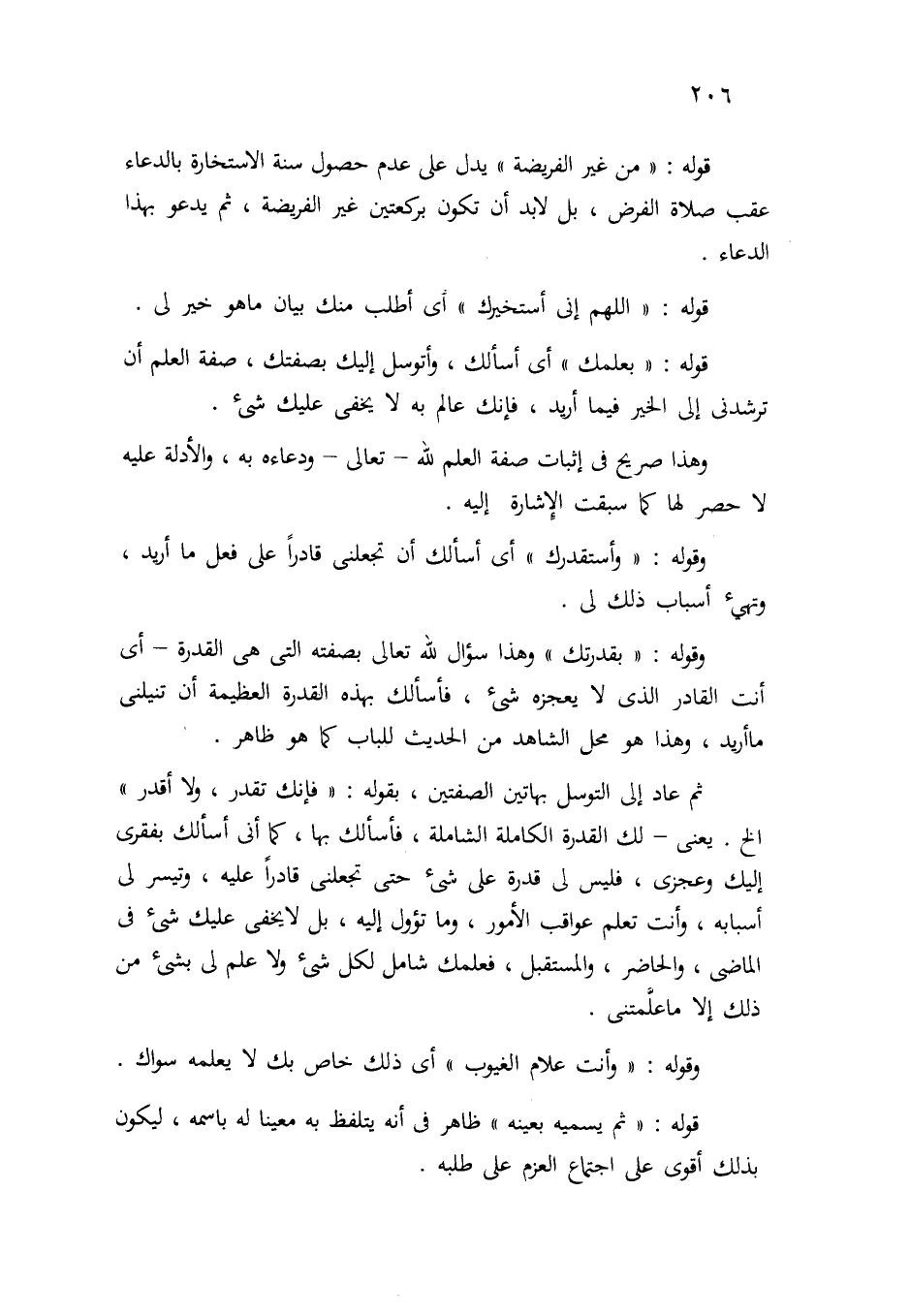 قوله: " بعلمك" أي: أسألك وأتوسل إليك بصفتك، صفة العلم، أن ترشدني إلى الخير فيما أريد، فإنك عالم به لا يخفى عليك شيء.