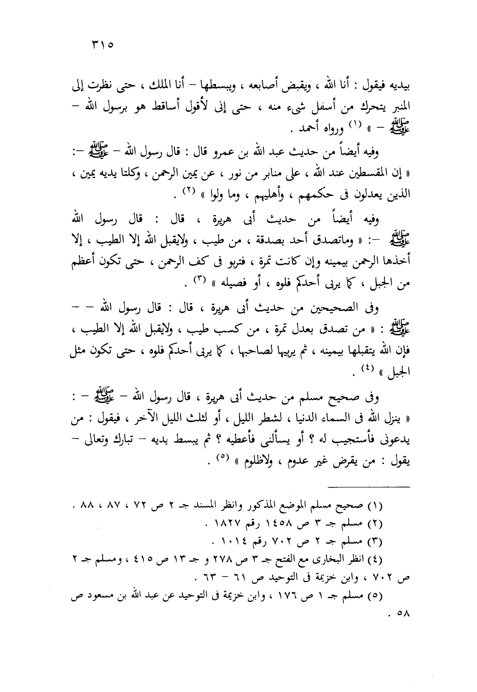 (¬4) انظر: " البخاري مع الفتح" (3/278) و (13/415) ، و "مسلم" (2/702) ، وابن خزيمة في "التوحيد" (ص61-63) .