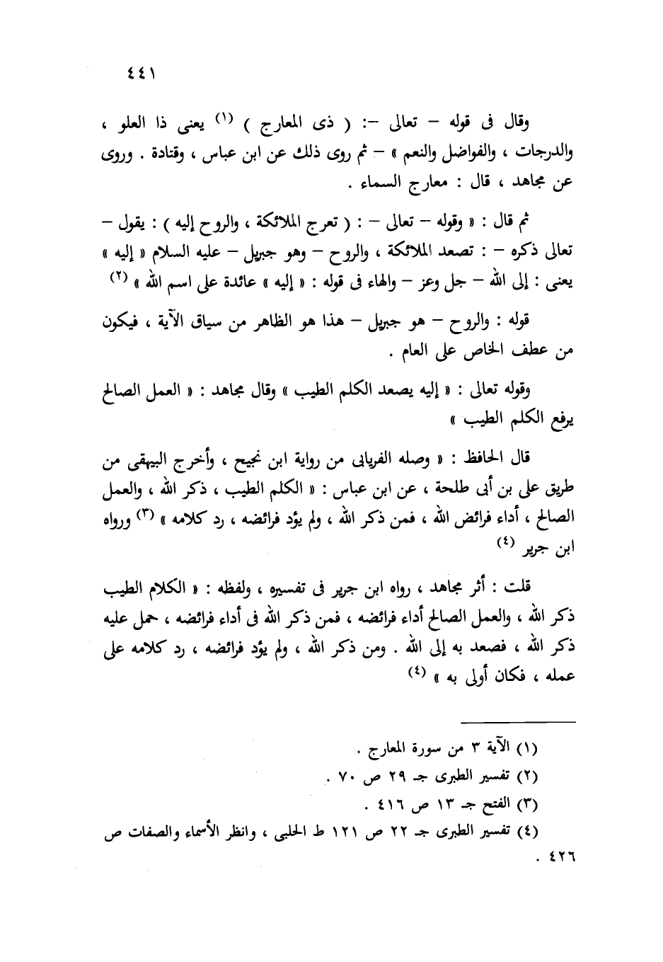 (¬3) "تفسير الطبري" (22/121) ط. الحلبي، وانظر: " الأسماء والصفات" (ص426) .