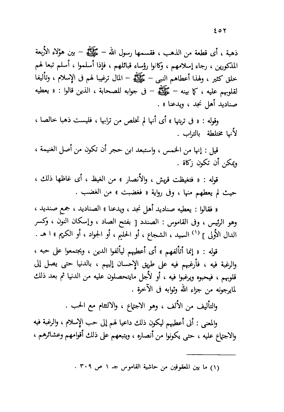 "فقالوا: يعطيه صناديد أهل نجد، ويدعنا" الصناديد: جمع صنديد، وهو: الرئيس، وفي "القاموس": الصندد {بفتح الصاد، وإسكان النون، وكسر الدال الأولى} (¬1) : السيد، الشجاع، أو الحليم، أو الجواد، أو الكريم " اهـ.