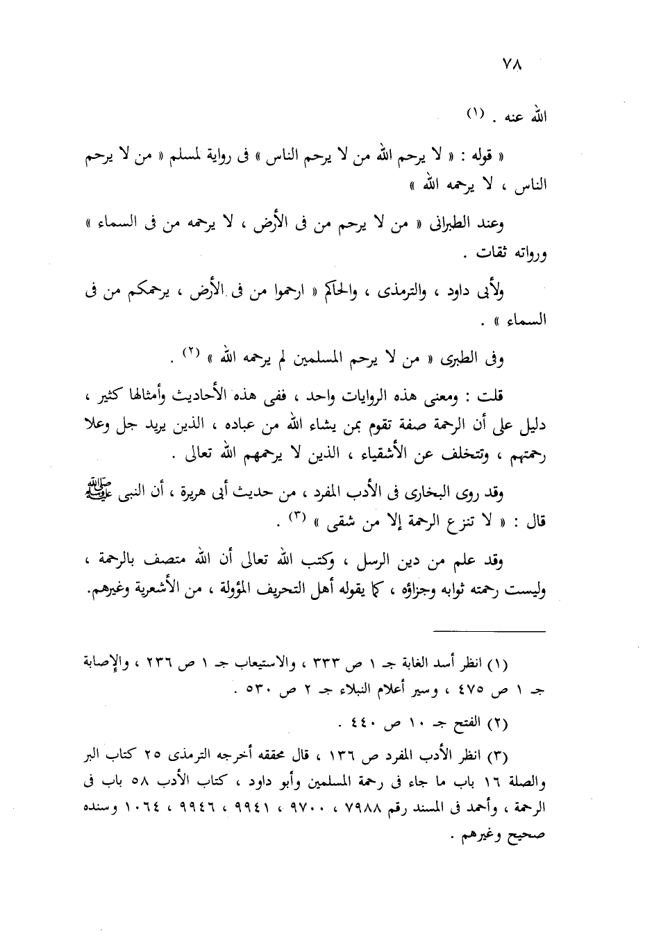 (¬3) انظر: "الأدب المفرد" (ص136) ، قال محققه: أخرجه الترمذي (25) ، كتاب البر والصلة (16) بابك ما جاء في رحمة المسلمين، وأبو داود، كتاب الأدب (58) ، باب في الرحمة، وأحمد في " المسند" رقم (7988، 9700، 9941، 9946، 1064) وغيرهم، وسنده صحيح.