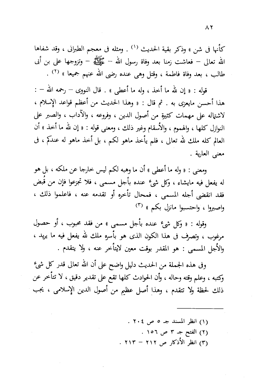 انقضى أجله المسمى، فمحال تأخره أو تقدمه عنه، فاعلموا ذلك، واصبروا، واحتسبوا ما نزل بكم" (¬3) .