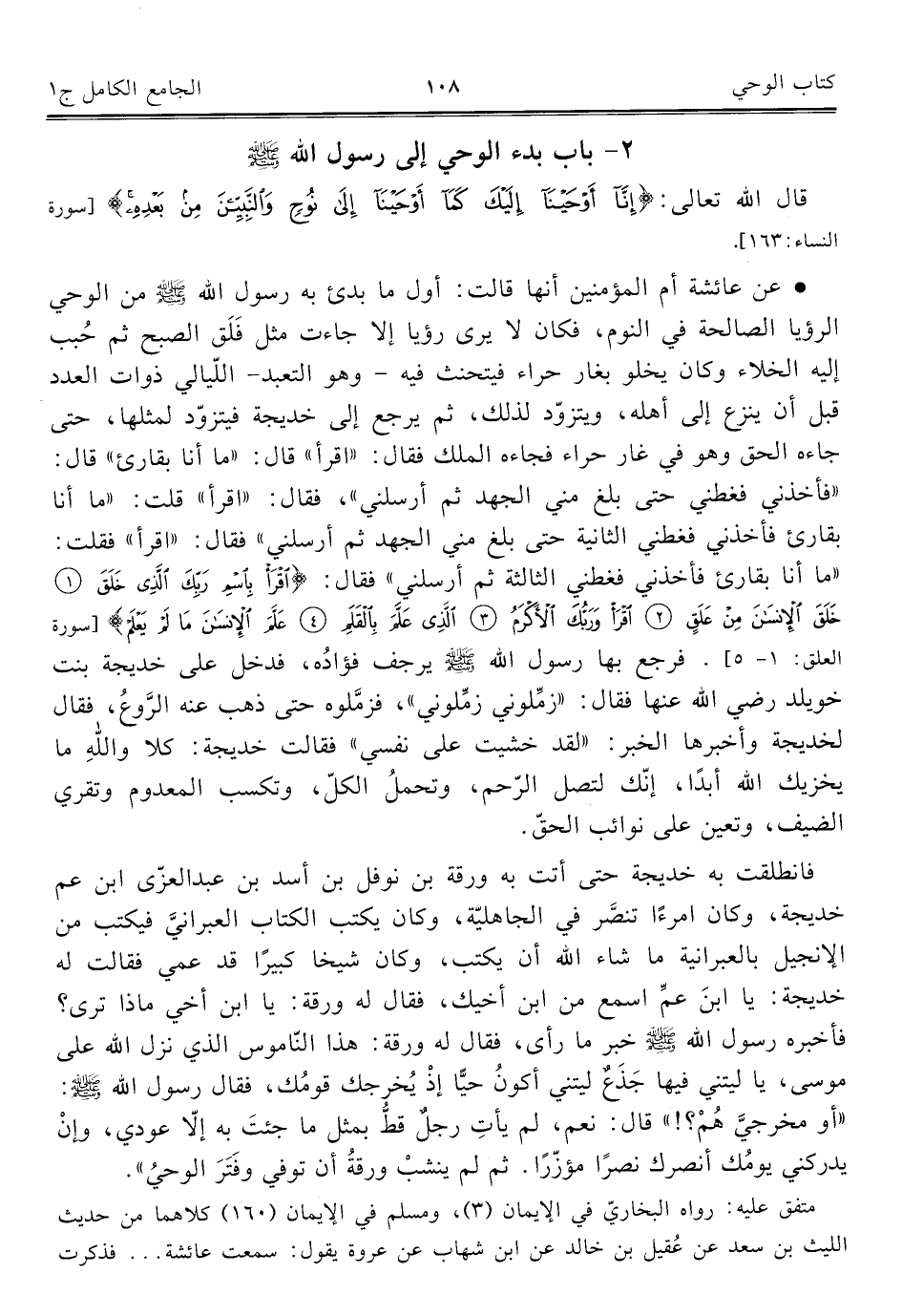 ٢ - باب بدء الوحي إلى رسول اللَّه -صلى اللَّه عليه وسلم-