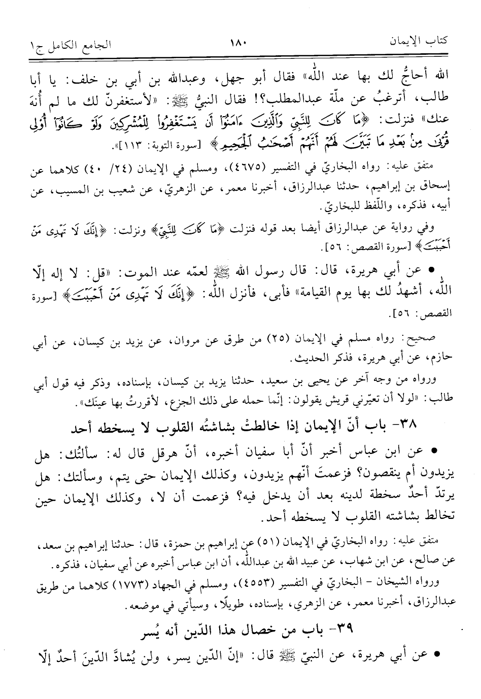 ٣٩ - باب من خصال هذا الدّين أنه يُسر