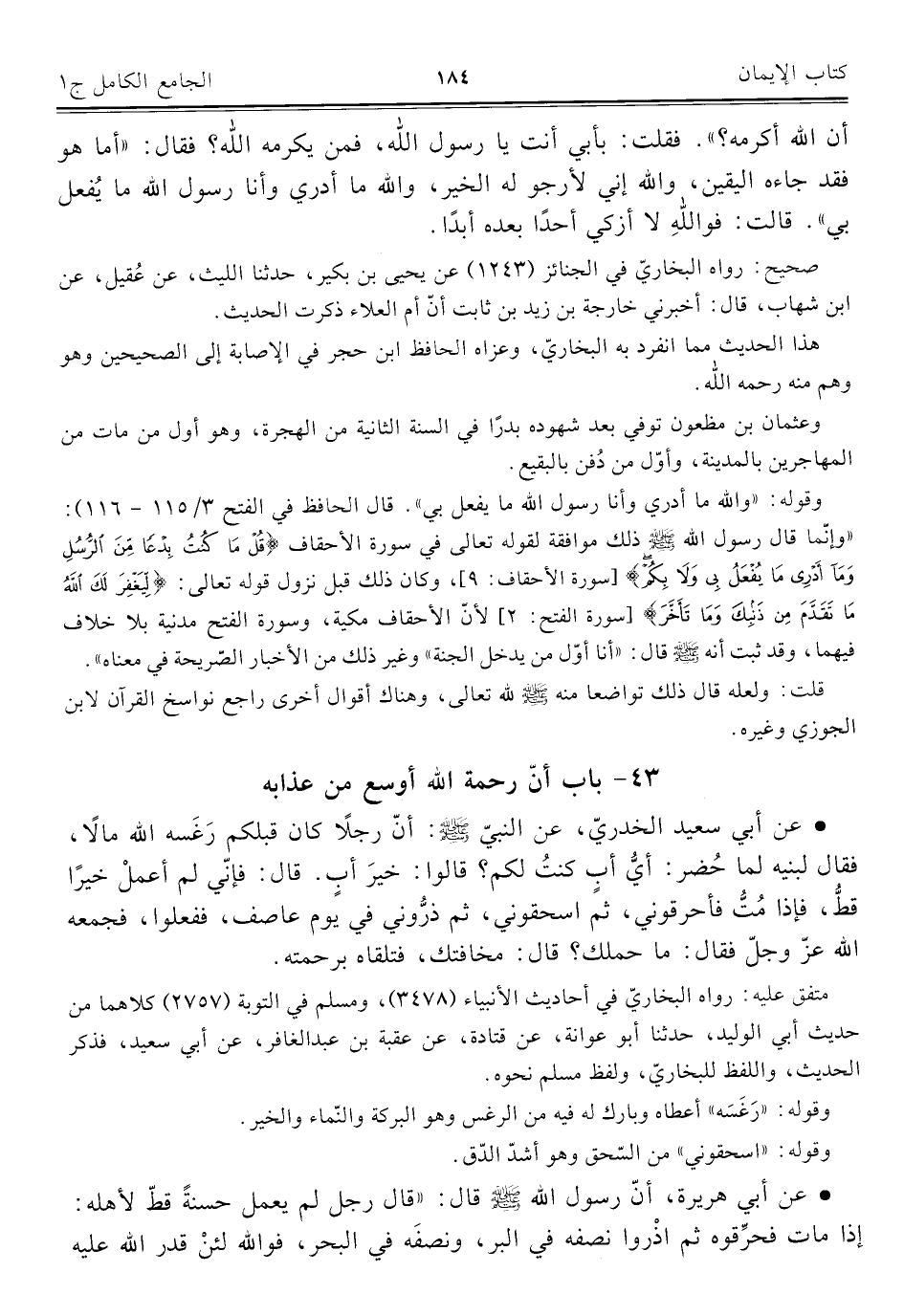 ٤٣ - باب أنّ رحمة اللَّه أوسع من عذابه