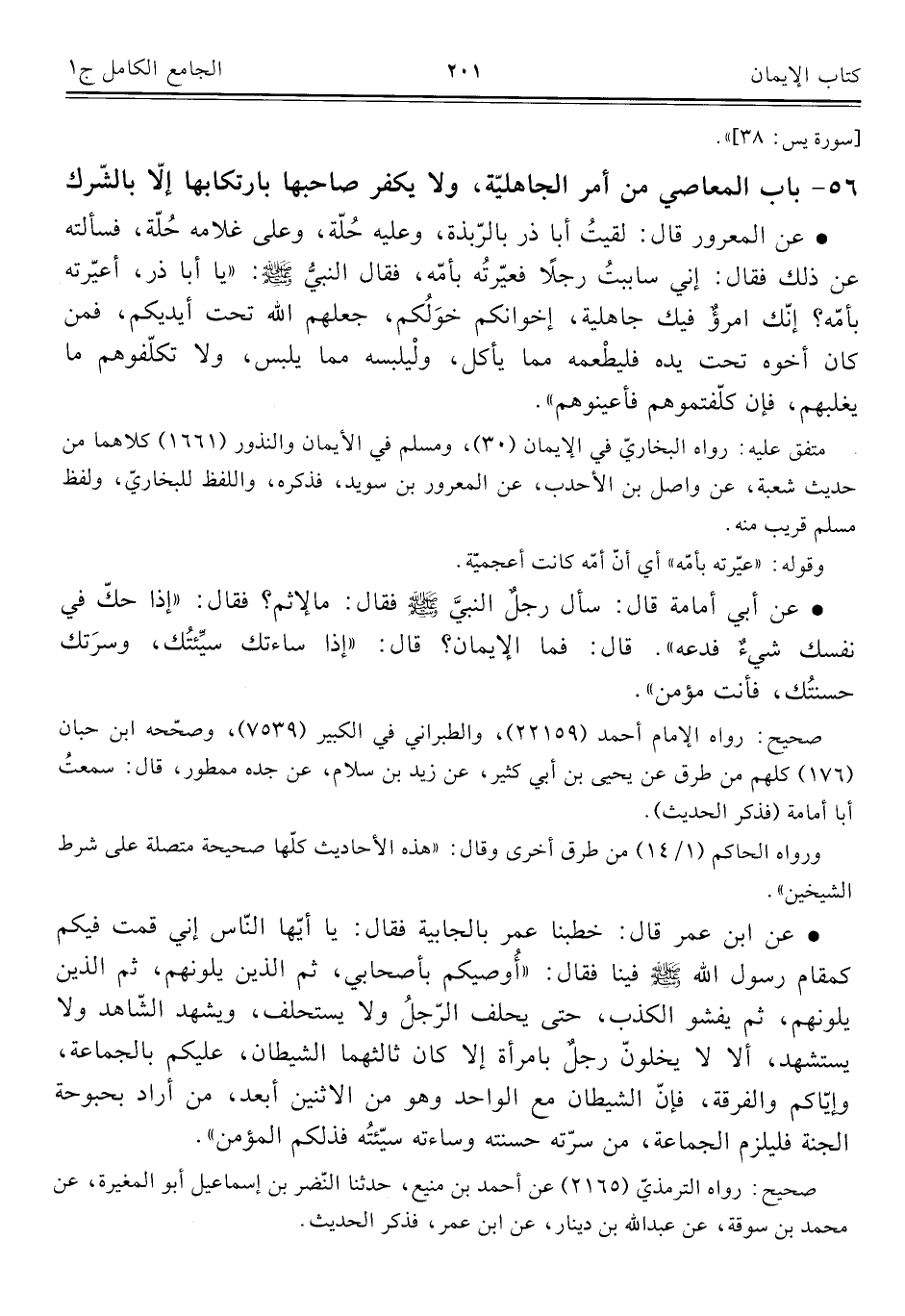 ٥٦ - باب المعاصي من أمر الجاهليّة، ولا يكفر صاحبها بارتكابها إِلَّا بالشّرك