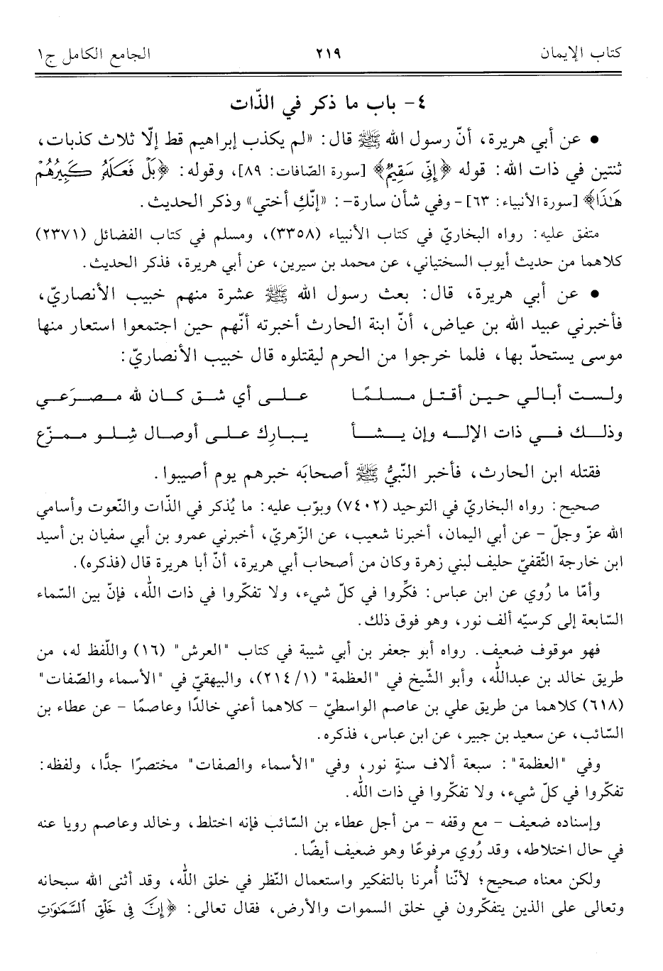 ٤ - باب ما ذكر في الذّات