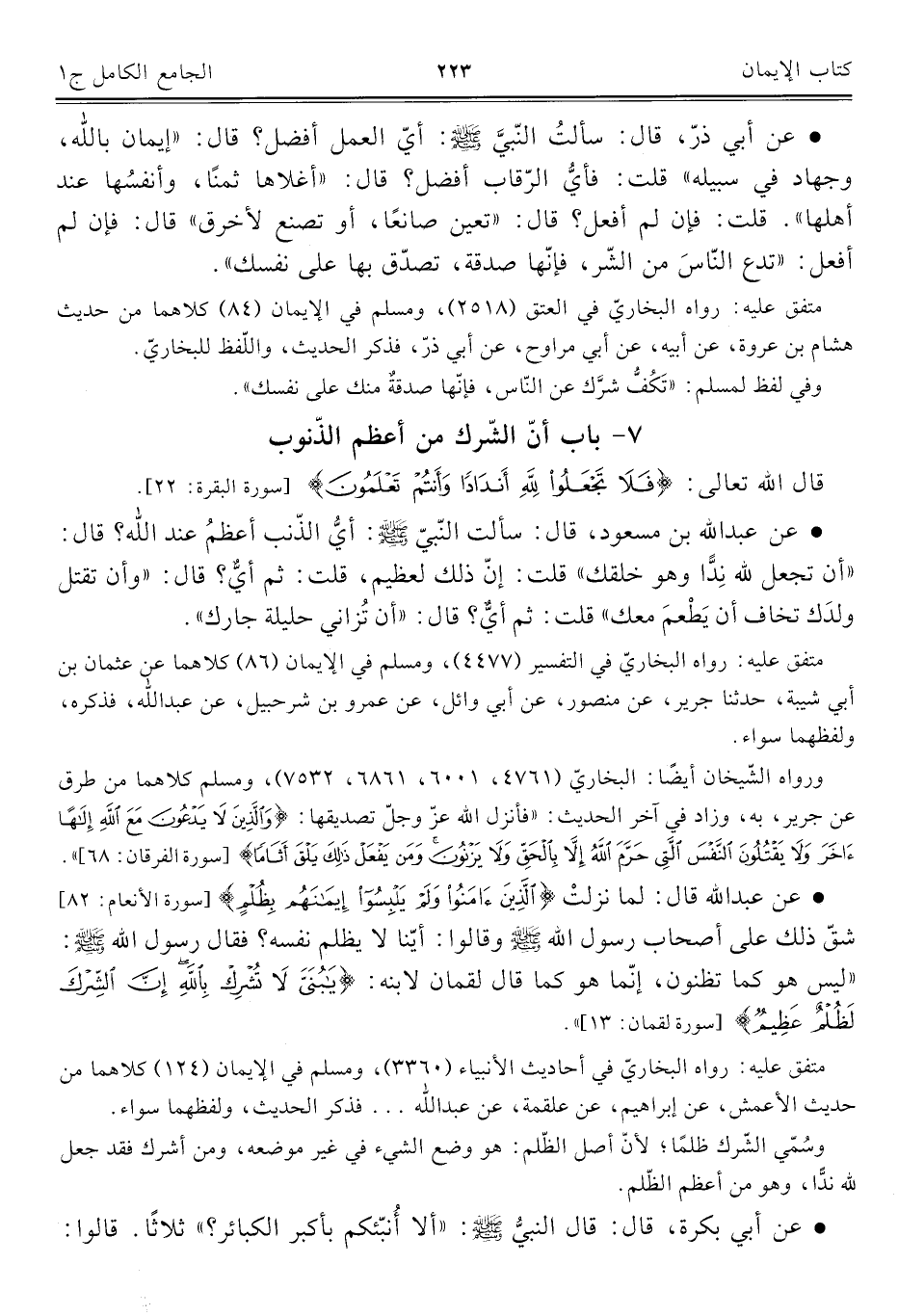 ٧ - باب أنّ الشّرك من أعظم الذّنوب