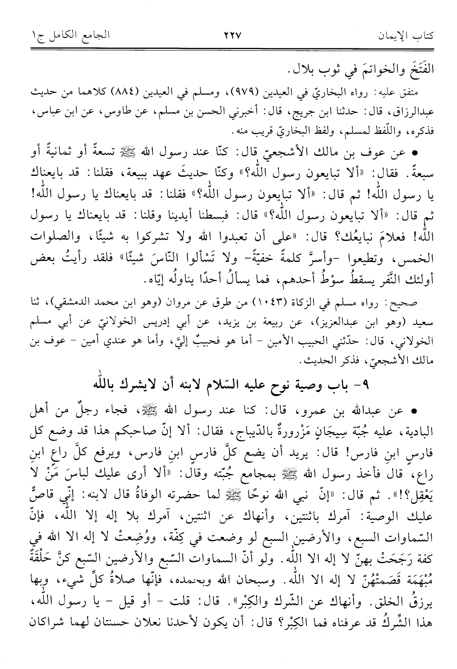 كتاب الجامع الكامل في الحديث الصحيح الشامل المرتب على أبواب الفقه (اسم الجزء: 1)