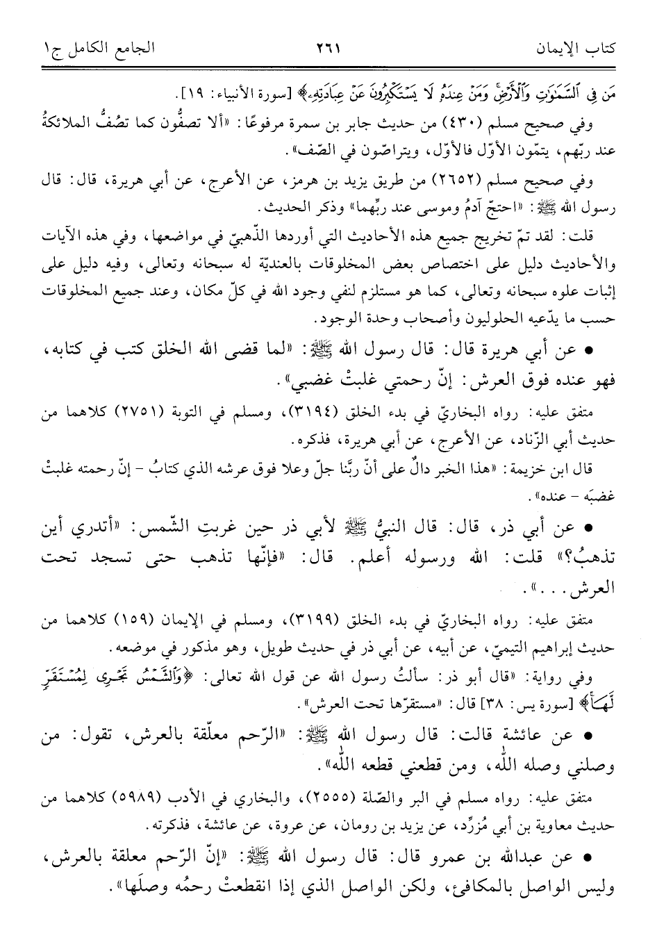قلت: لقد تمّ تخريج جميع هذه الأحاديث التي أوردها الذهبي في مواضعها، وفي هذه الآيات والأحاديث دليل على اختصاص بعض المخلوقات بالعنديّة له سبحانه وتعالى، وفيه دليل على إثبات علوه سبحانه وتعالى، كما هو مستلزم لنفي وجود اللَّه في كل مكان، وعند جميع المخلوقات حسب ما يدّعيه الحلوليون وأصحاب وحدة الوجود.