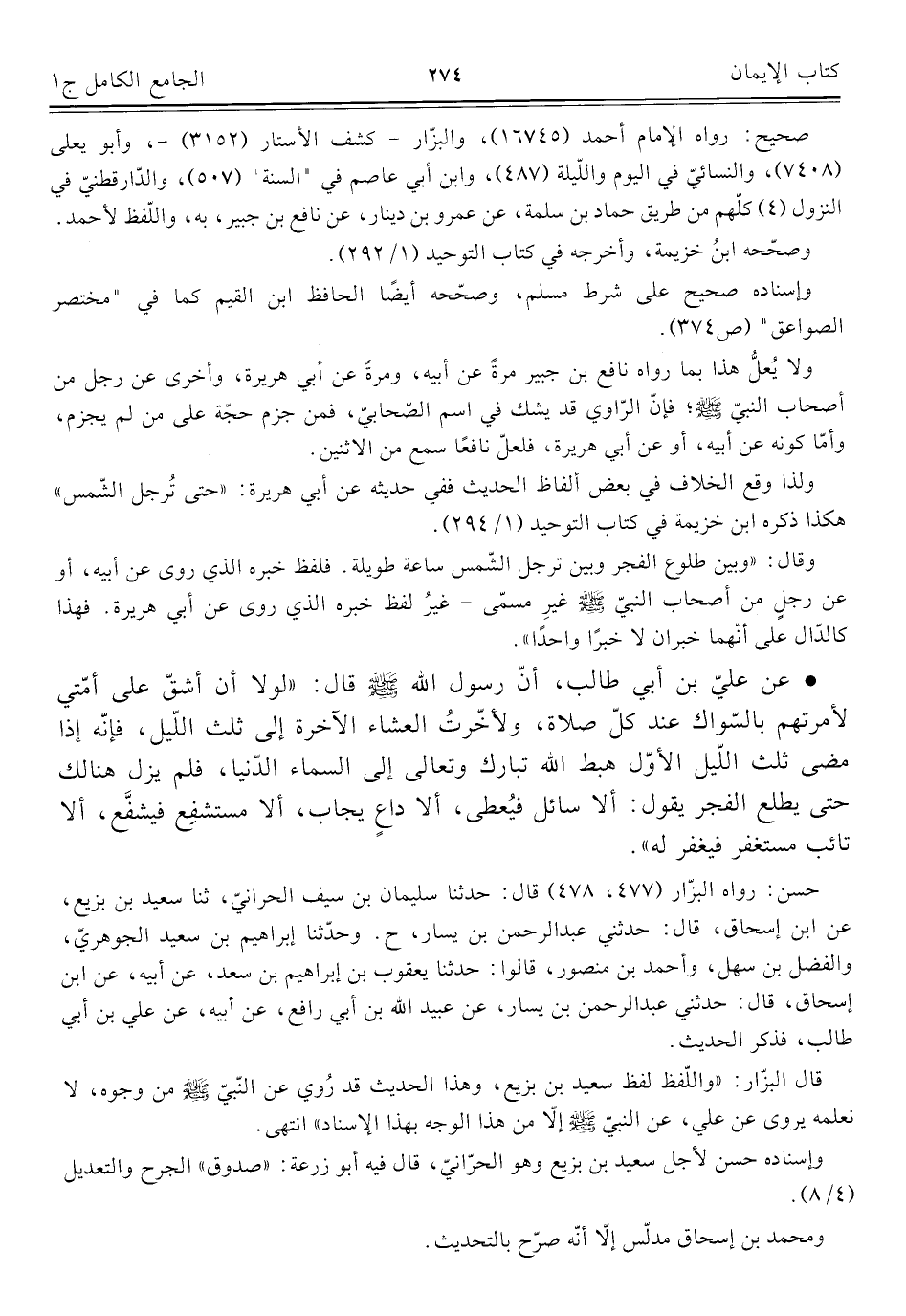 كتاب الجامع الكامل في الحديث الصحيح الشامل المرتب على أبواب الفقه (اسم الجزء: 1)