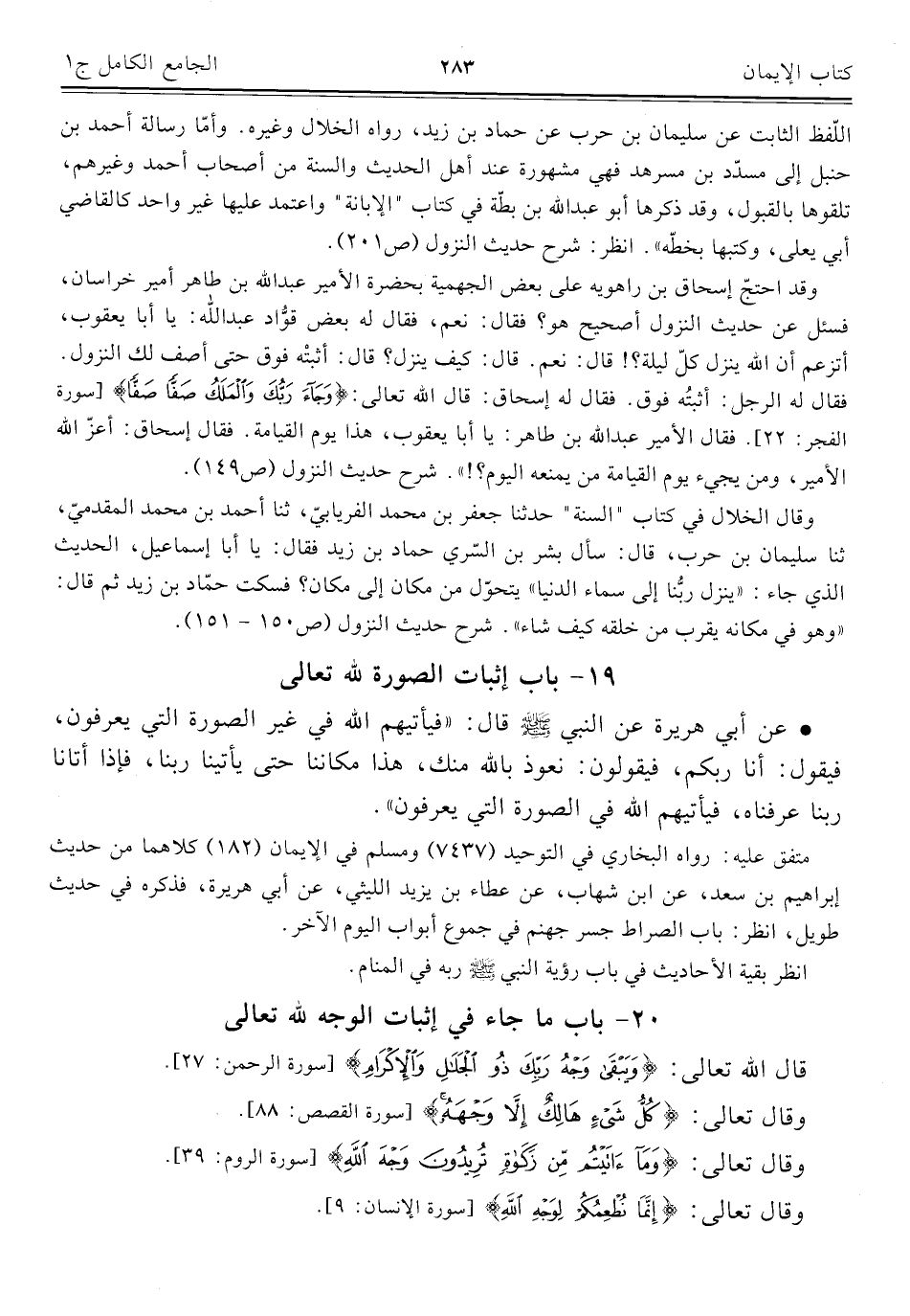 ٢٠ - باب ما جاء في إثبات الوجه للَّه تعالى