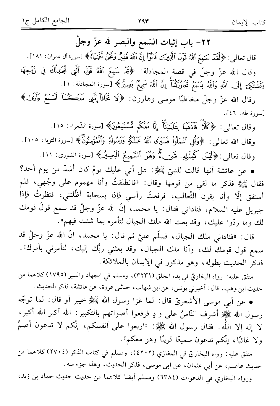 ٢٢ - باب إثبات السّمع والبصر للَّه عزّ وجلّ
