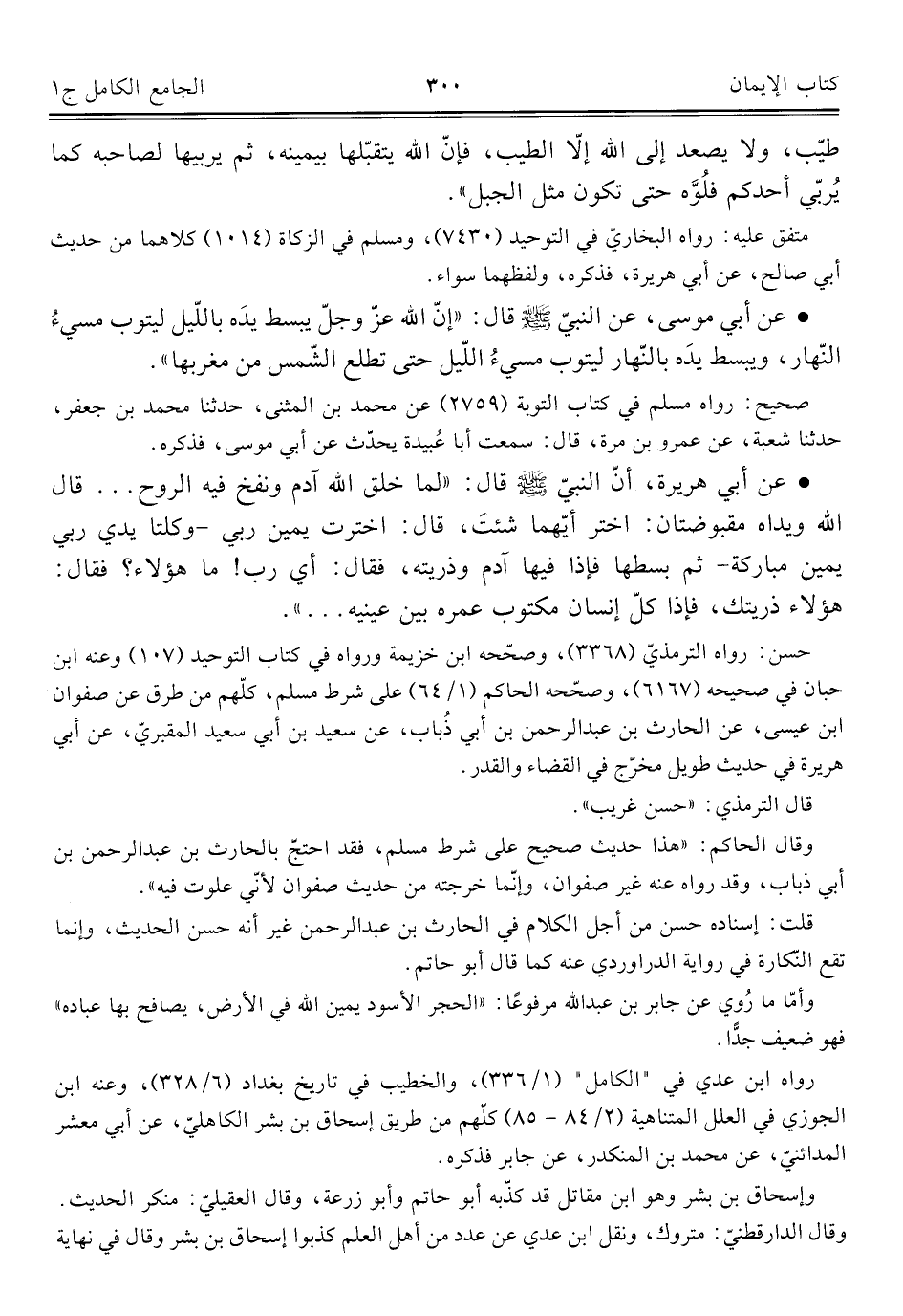 حسن: رواه الترمذيّ (٣٣٦٨)، وصحّحه ابن خزيمة ورواه في كتاب التوحيد (١٠٧) وعنه ابن حبان في صحيحه (٦١٦٧)، وصحّحه الحاكم (١/ ٦٤) على شرط مسلم، كلّهم من طرق عن صفوان ابن عيسى، عن الحارث بن عبد الرحمن بن أبي ذُباب، عن سعيد بن أبي سعيد المقبريّ، عن أبي هريرة في حديث طويل مخرّج في القضاء والقدر.