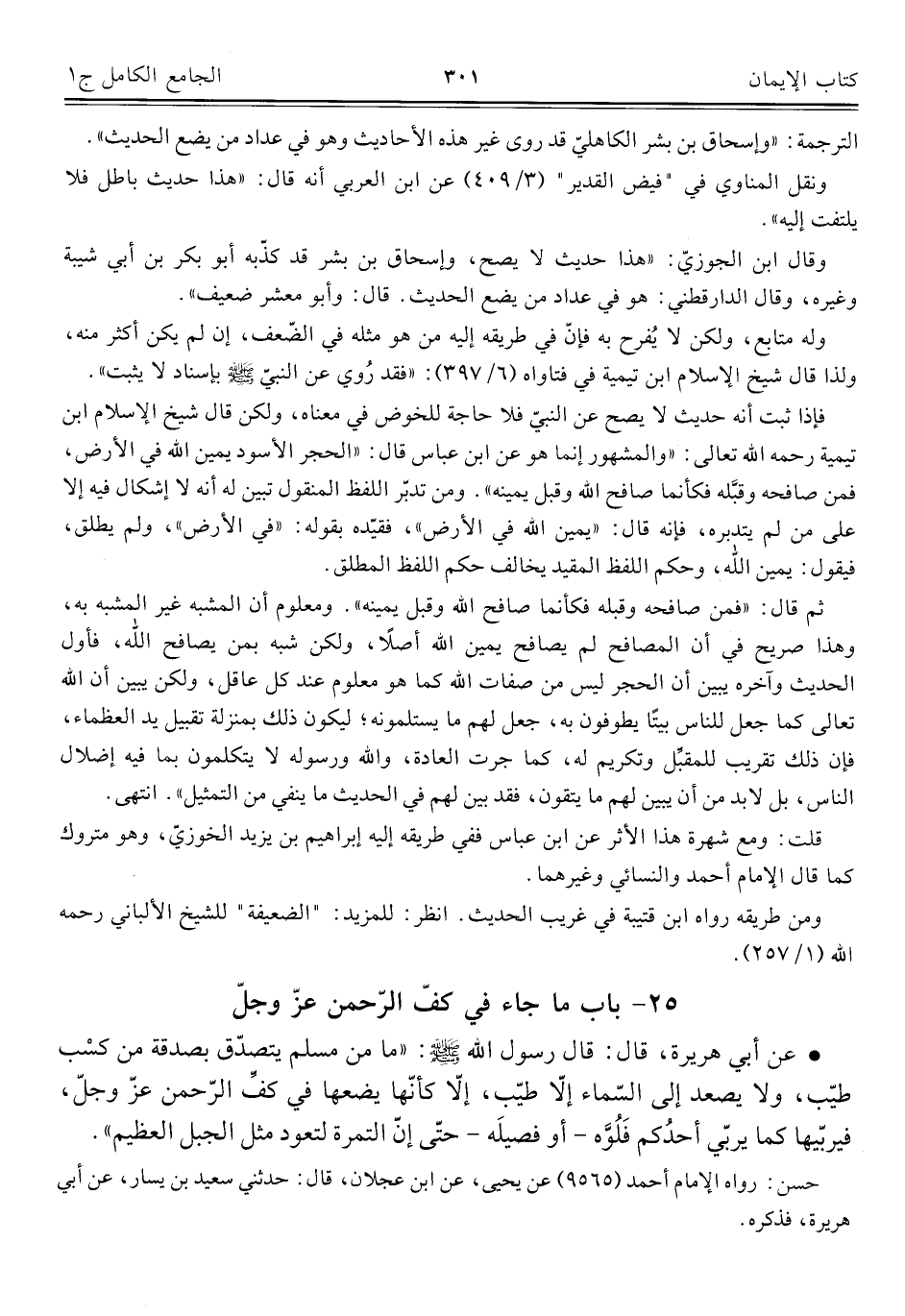 ٢٥ - باب ما جاء في كفّ الرحمن عزّ وجلّ