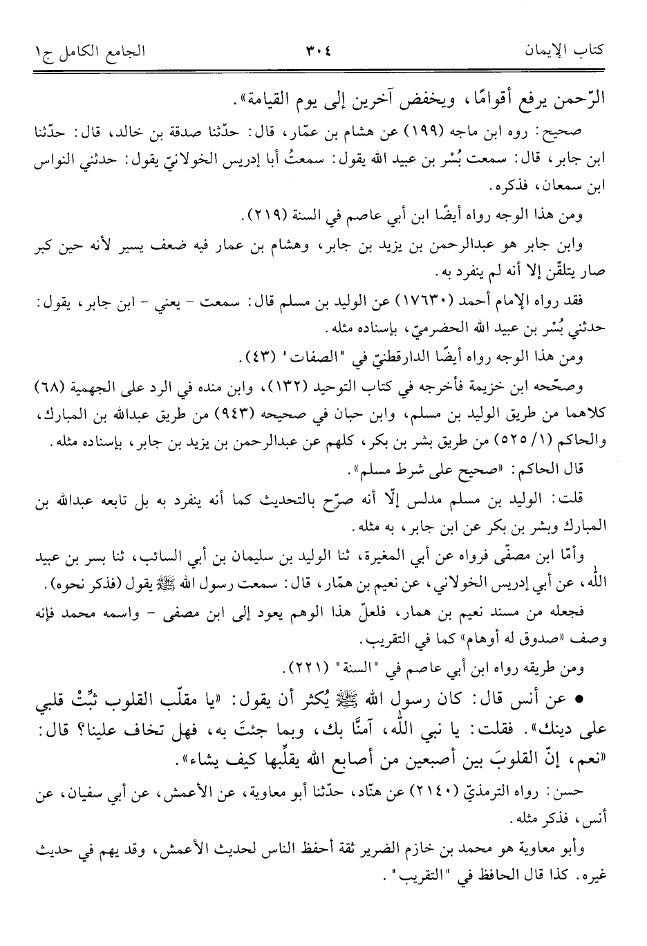 صحيح: روه ابن ماجه (١٩٩) عن هشام بن عمّار، قال: حدثنا صدقة بن خالد، قال: حدّثنا ابن جابر، قال: سمعت بُسْر بن عبد اللَّه يقول: سمعتُ أبا إدريس الخولانيّ يقول: حدثني النواس ابن سمعان، فذكره.