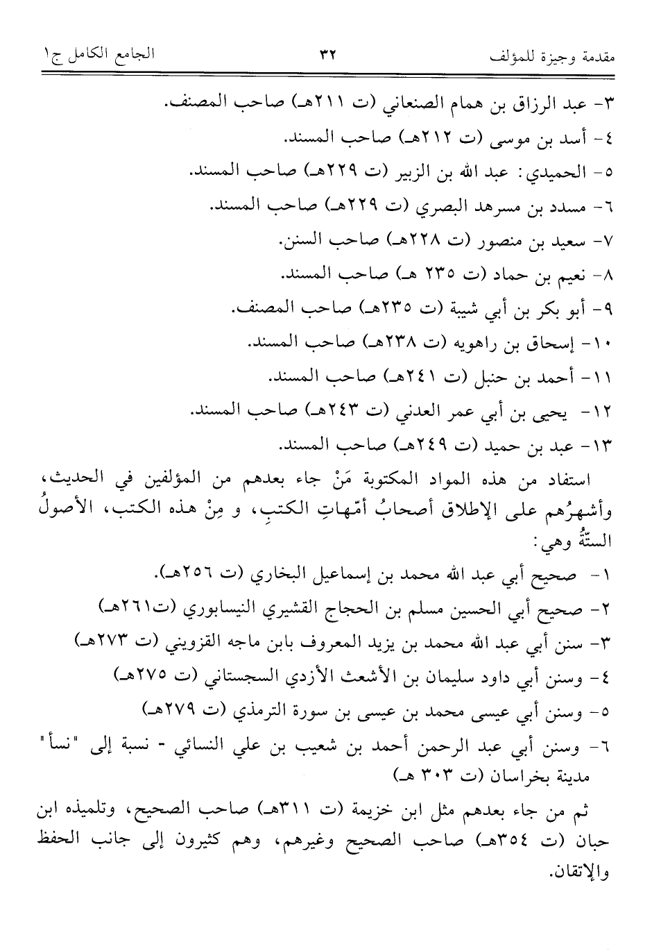 كتاب الجامع الكامل في الحديث الصحيح الشامل المرتب على أبواب الفقه (اسم الجزء: 1)