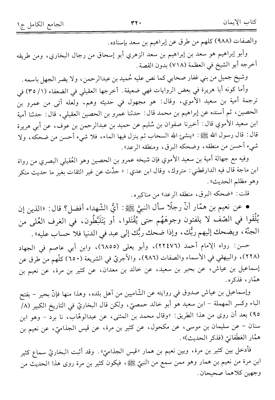 حسن: رواه الإمام أحمد (٢٢٤٧٦)، وأبو يعلى (٦٨٥٥)، وابن أبي عاصم في الجهاد (٢٢٨)، والبيهقي في الأسماء والصفات (٩٨٦)، والآجريّ في الشريعة (٦٥٠) كلّهم من طرق عن إسماعيل بن عياش، عن بحير بن سعيد، عن خالد بن معدان، عن كثير بن مرة، عن نعيم بن همّار، فذكره.