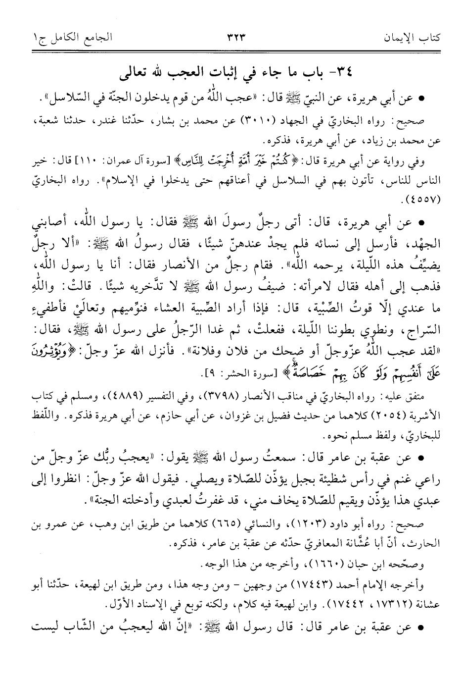 ٣٤ - باب ما جاء في إثبات العجب للَّه تعالى