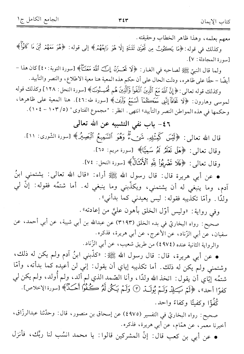 ٤٦ - باب نفي التشبيه عن اللَّه تعالى